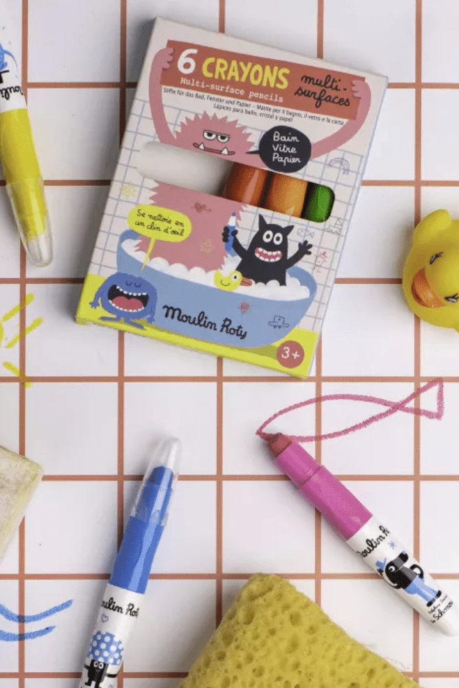 Découvrez les crayons multisurfaces, les schmouks. Sur les vitres, dans le bain ou sur du papier pour un effet aquarelle, les petits artistes ont de quoi s’occuper. Les crayons se vissent et se dévissent pour agrandir la mine et la protéger. Vos jolis dessins se nettoient ensuite en un clin d’Å“il !