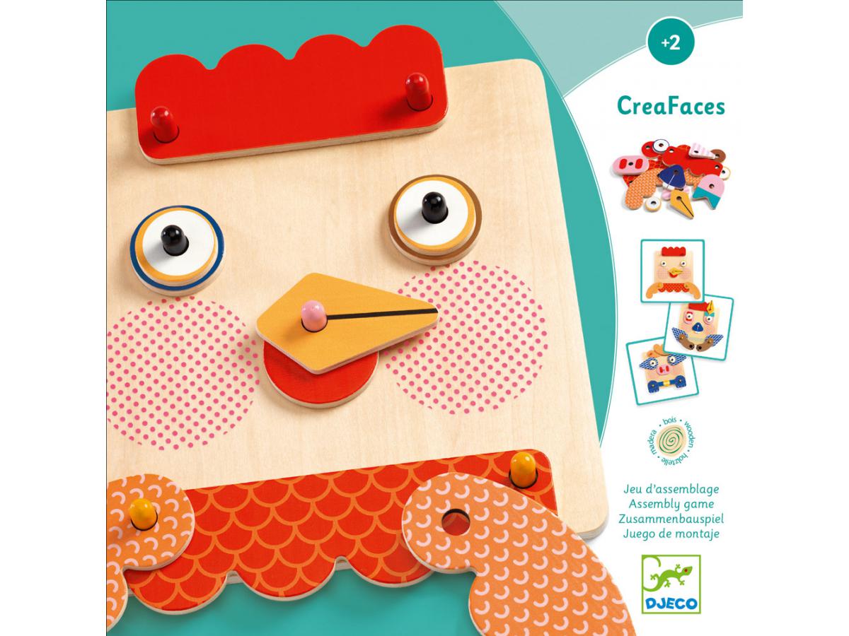Découvrez le jeu d’assemblage Creafaces de Djeco, un jeu d’assemblage et de manipulation pour les enfants à partir de 2 ans. Les filles et les garçons vont développer leur habilité et leur dextérité en reproduisant des animaux en suivants les modèles.