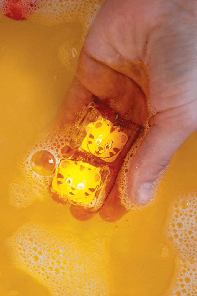 Découvrez les cubes lumineux de Glo Pals ! Les Glo Pals sont des figurines lumineuses et ludiques conçues pour rendre le bain des enfants plus amusant et interactif. Chaque cube Glo Pal s’illumine automatiquement au contact de l’eau, ajoutant une touche de magie à chaque bain. Les Glo Pals sont fabriqués à partir de plastique 100 % recyclé.