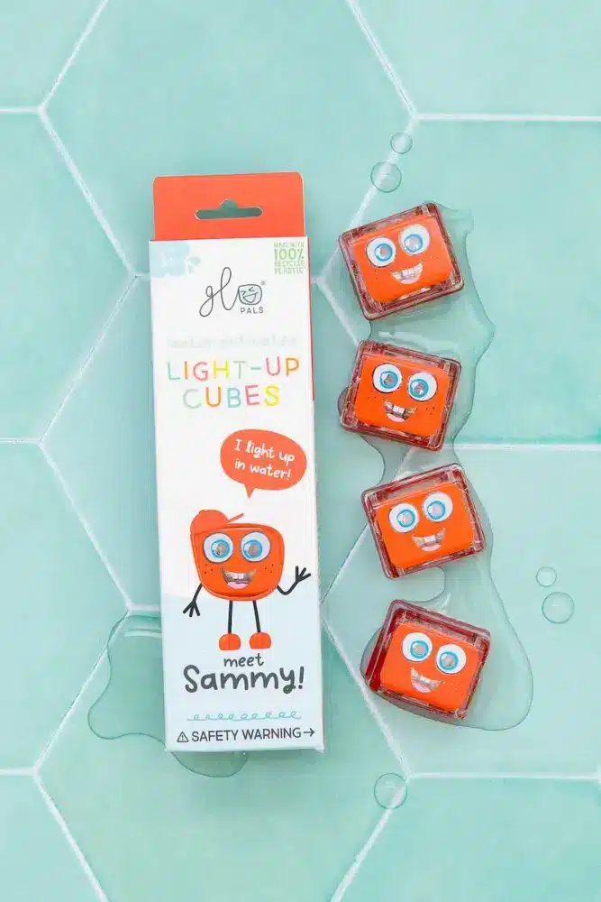 Les Glo Pals sont des jouets lumineux conçus pour rendre le moment du bain des enfants plus amusant et interactif. Chaque cube s’illumine automatiquement au contact de l’eau, ajoutant une touche de magie à chaque bain. Les cubes s’allument dès qu’ils sont immergés et s’éteignent lorsqu’ils sont retirés de l’eau.