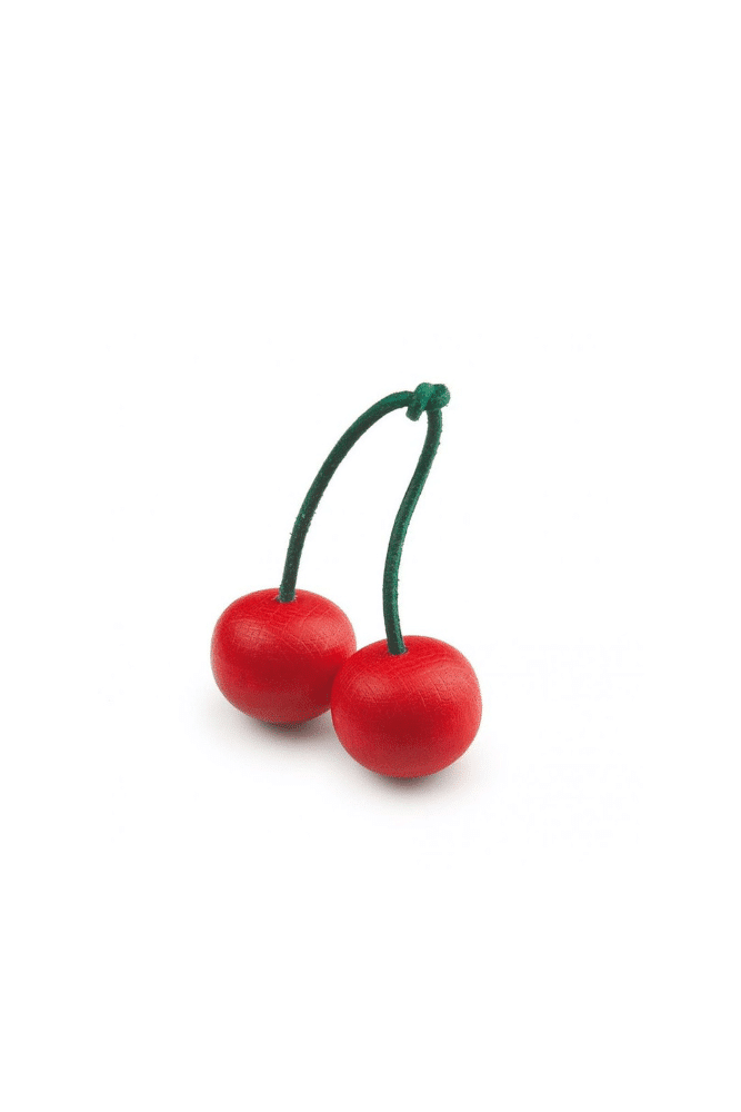 Une paire de cerises en bois pour jouer à la dinette ou à la marchande. Idéal pour les jeux d’imitation.