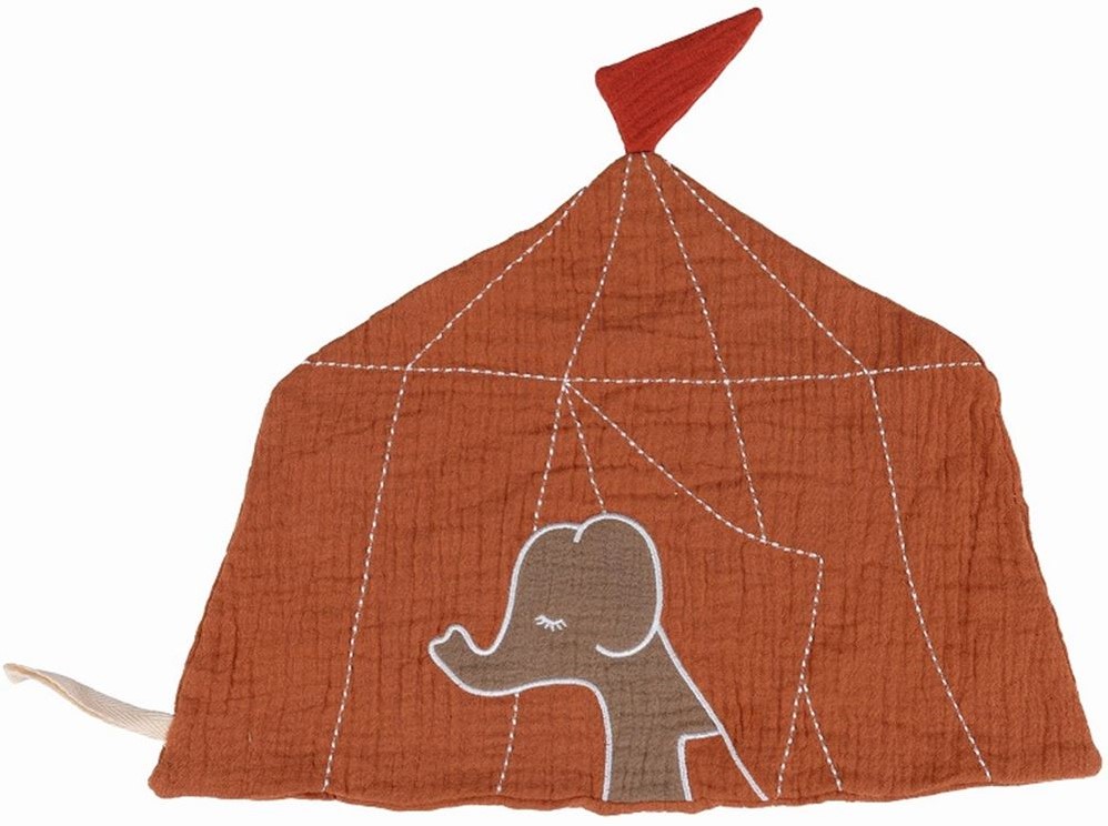 Doudou Cirque Un charmant petit compagnon en double gaze de coton, offrant réconfort et sécurité aux tout-petits. Il est également pourvu d’un passant pratique pour attacher une tétine, et peut être aisément lavé en machine à 30 degrés.