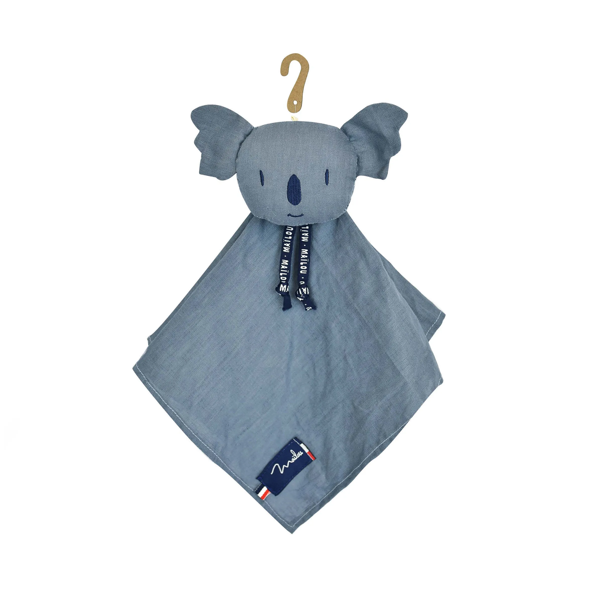 Doudou plat Koala bleu 100 % lin – Collection Perlipopette
