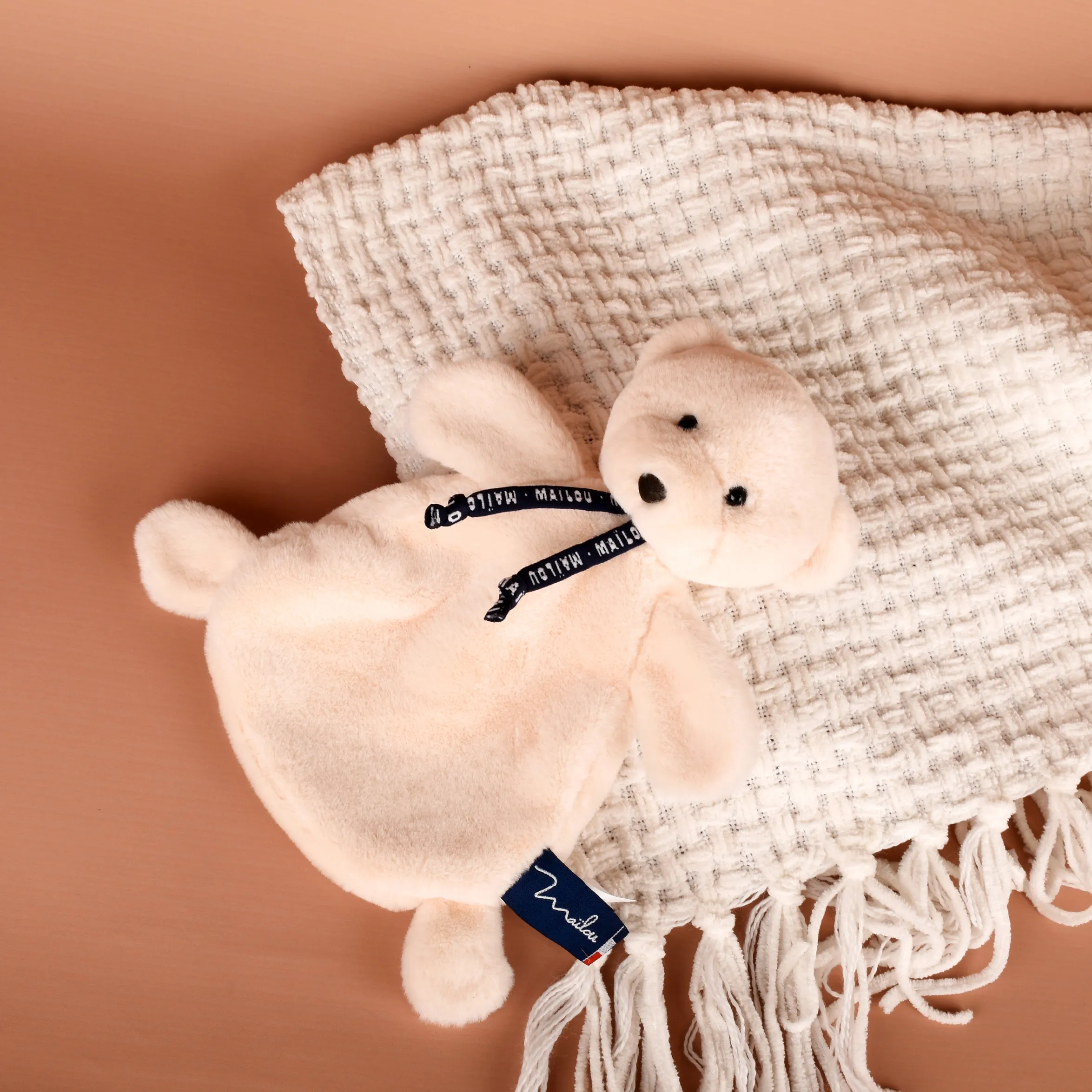 Doudou plat ours ivoire – Dorlotin fait main Bretagne