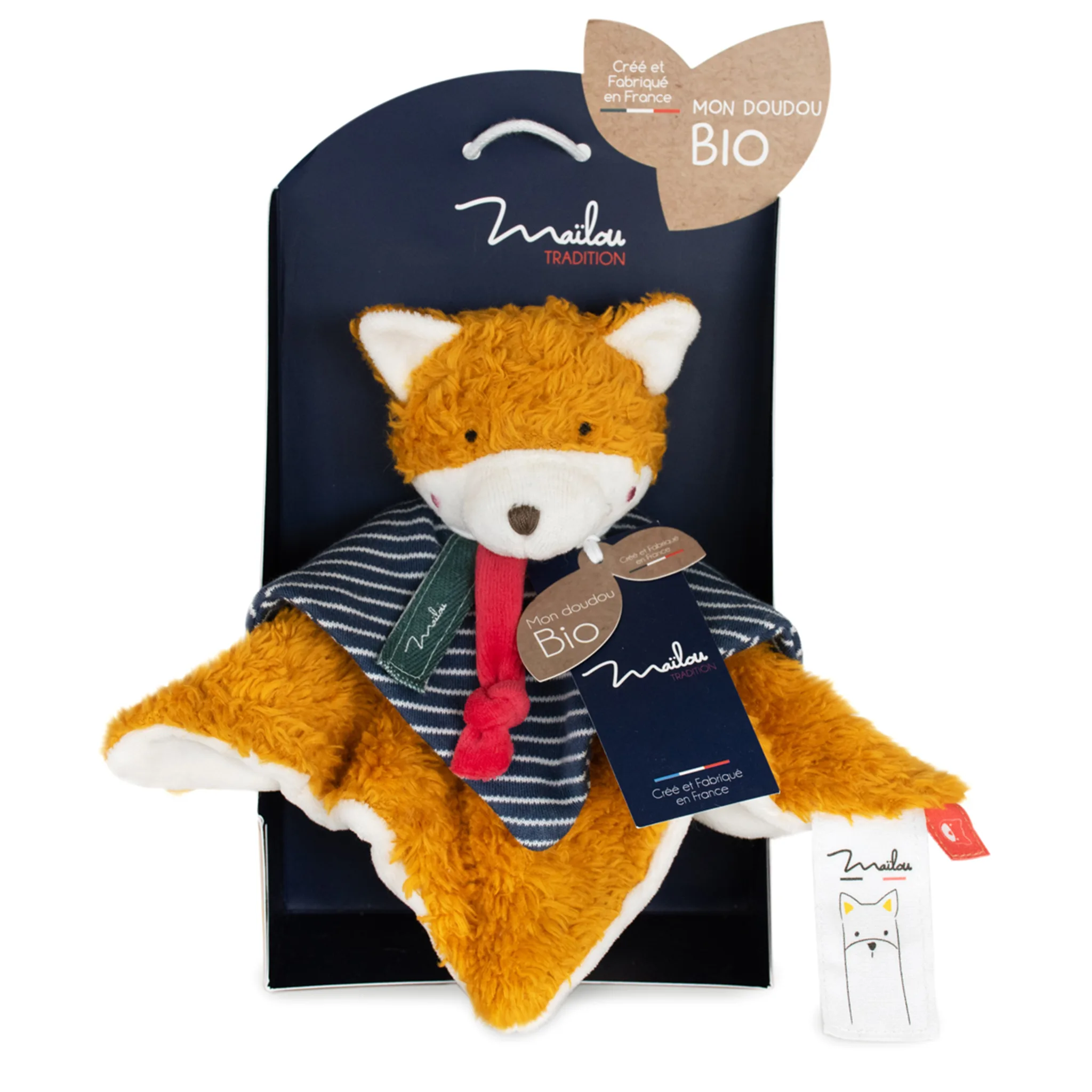 Doudou plat renard bio – Cousu main en Bretagne