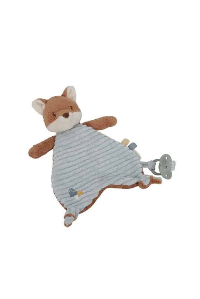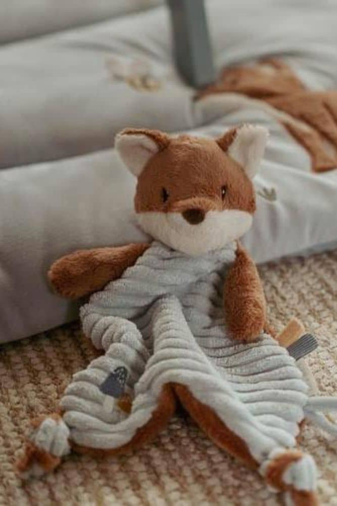 Découvrez ce doudou renard prêt à réconforter et câliner votre petit. Le corps du renard est un chiffon merveilleusement doux avec des étiquettes ludiques, une broderie et deux noeuds qui peuvent être facilement saisi par les petites mains. Vous pourrez également y accrocher une tétine pour qu’elle soit toujours à portée de main.