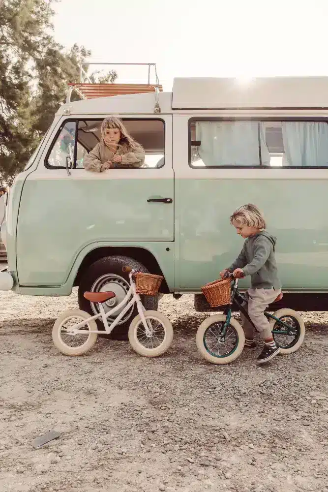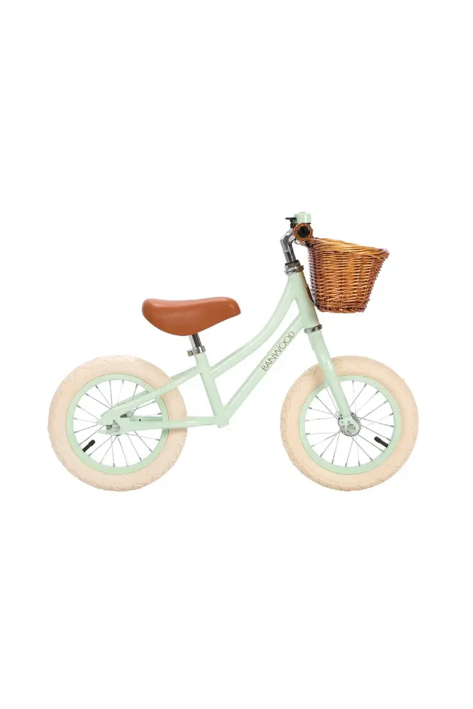 Draisienne Menthe Cadre en acier trempé 12 pouces Panier en osier Recommandé de 2 à 5 ans Certification CE Poids draisienne : 4.5 kg Hauteur d’assisse adaptable 37-44 cm Guidon réglable 50 à 59 cm.
