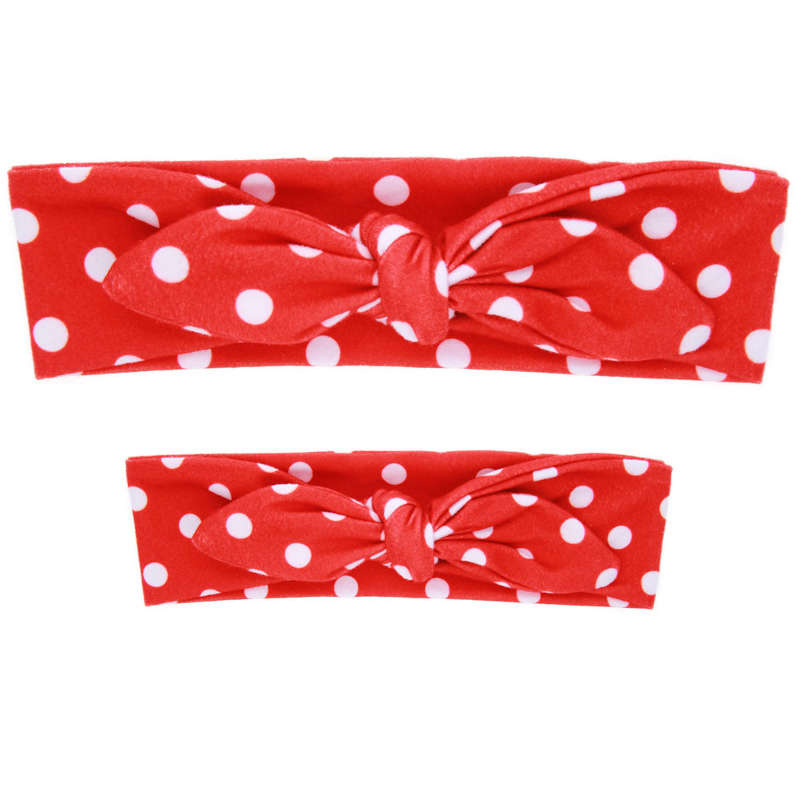 Coquette de mère en fille! Lot de 2 bandeaux, une taille bébé/enfant et l’autre taille adulte. Bandeau en tissu bleu ou rouge avec motif pois blancs. Réglable grâce au nœud. composition : Polyester 94%, Élasthanne 6%