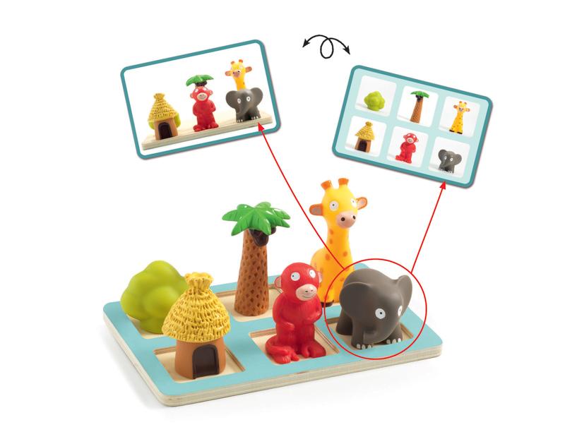 Devant, derrière, à -côté… la notion d’espace est difficile à appréhender pour les enfants, c’est pourquoi il est plus facile de leur expliquer avec des figurines. Eduludo Spacio de Djeco est un beau jeu pour se repérer dans l’espace.
