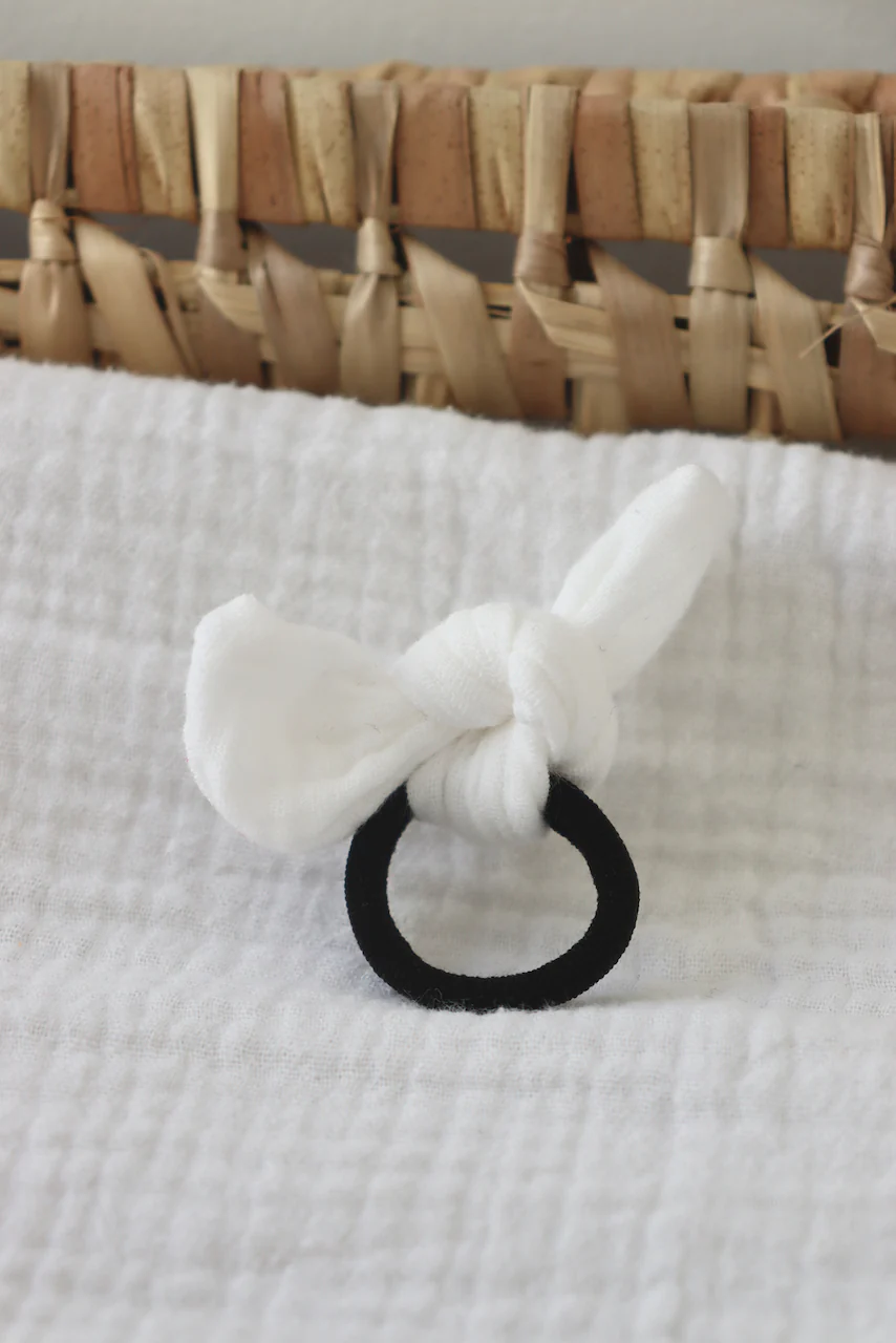Un incontournable de la jolie marque Maho! L’élastique Heidi se noue dans les cheveux. 2 à 3 tours selon l’épaisseur de chevelure. La taille Baby se porte aussi bien pour les petits que pour les grands, rien de plus joli que de faire une demie-queue ou finir une tresse avec. On note son élastique qui n’abîme pas les cheveux.