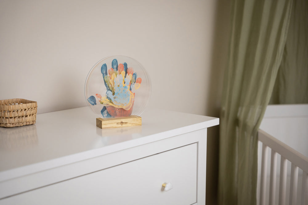 Le Family Colors est un cadre décoratif qui permet d’exposer par jeu de transparence les empreintes de 5 membres d’une famille, créant une Å“uvre d’art unique.