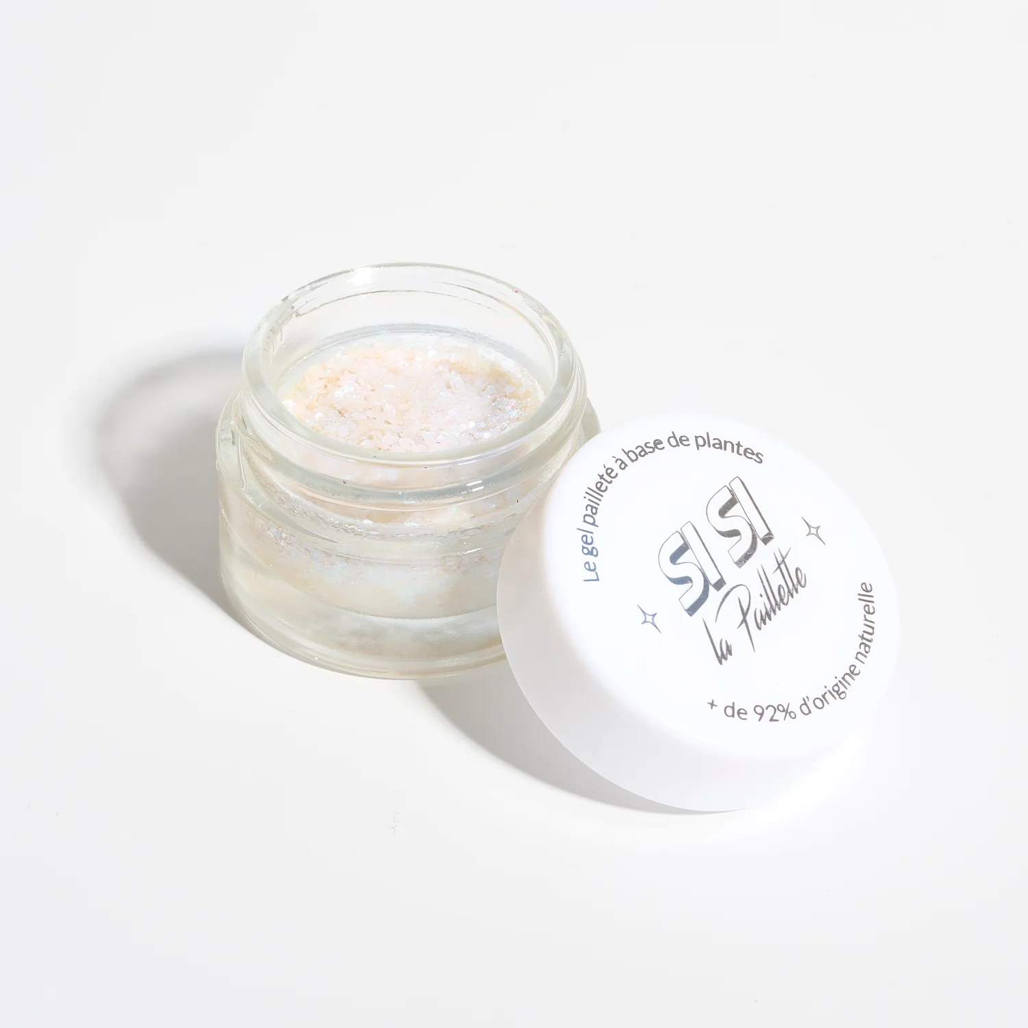 Un gel pailleté Nuit Blanche incroyablement concentré à glisser dans votre poche pour briller en un coup de doigt ! 👆 Fabriqué en France, conçu à partir d’extraits de karité et de paillettes à base de plantes, facile à appliquer et longue tenue. Le combo gagnant entre nos paillettes à base de plantes et le karité : – Fabriqué en France – Composé à 97% d’ingrédients d’origine naturelle – Disponible en 3 coloris : Végas Bébé (doré), GalaxSiSi (bleu) et Nuit Blanche (blanc) – Facile à appliquer – Longue tenue – Kids friendly