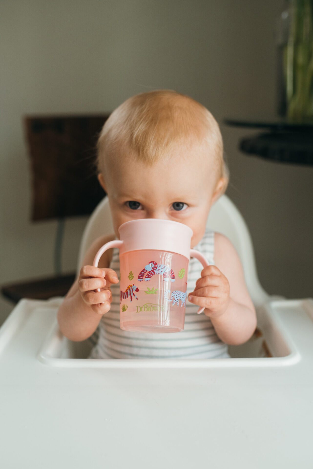 Faites de la transition du biberon vers le gobelet une réussite avec la Milestones Cheers 360 Cup de Dr. Brown’s.