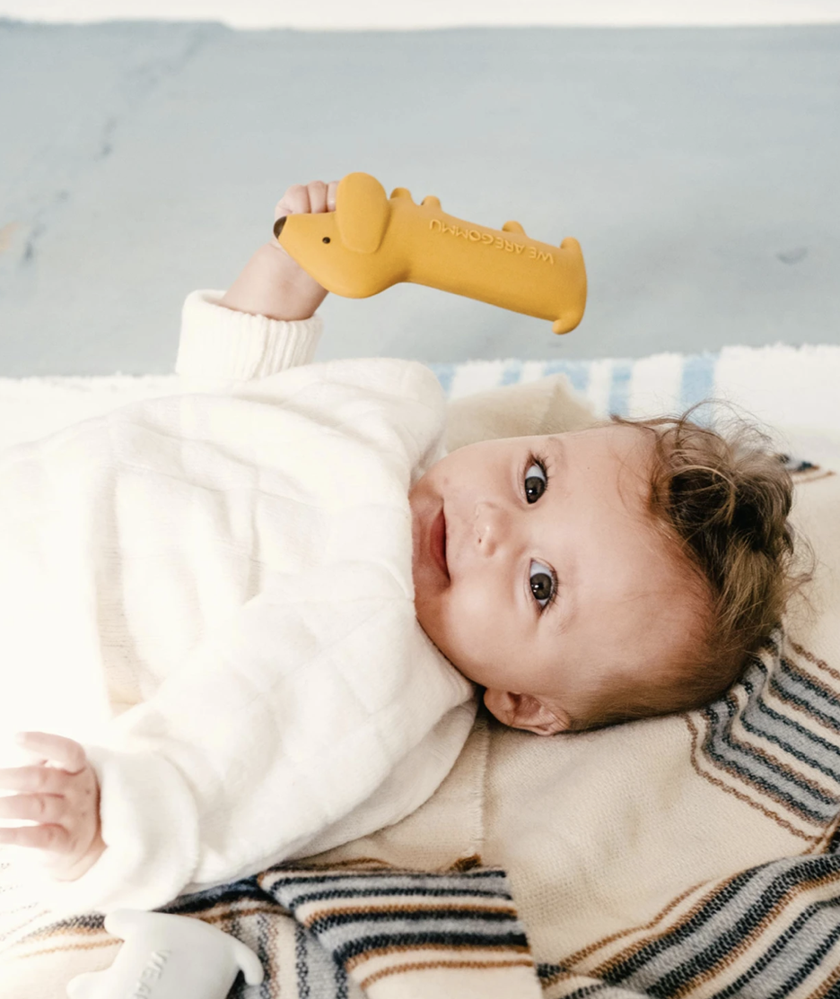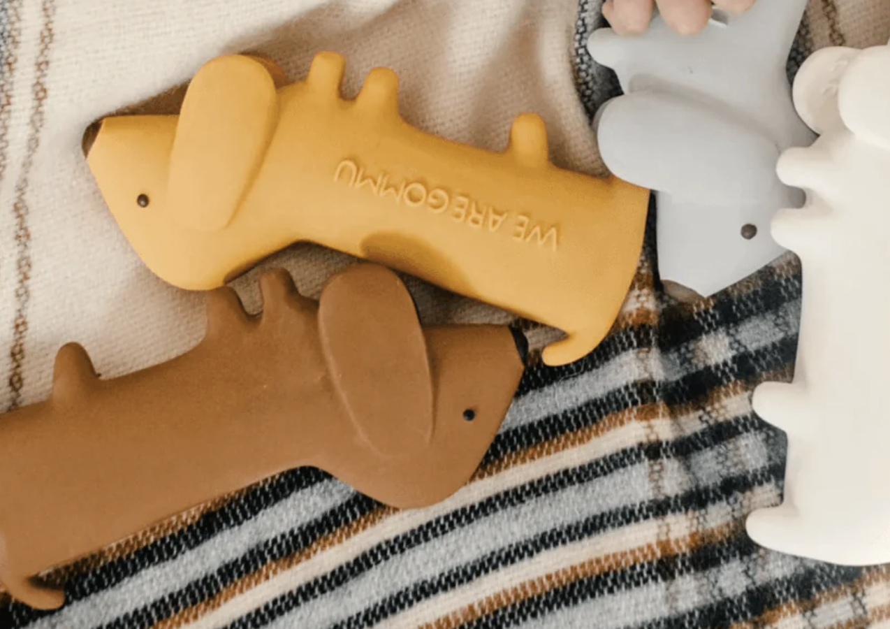 Cet adorable chien en caoutchouc naturel de la marque WE ARE GOMMU sera parfait pour les plus petits comme les plus grands. Facile à mordiller pour soulager les poussées dentaire, il peut aussi être un chouette compagnon pour pousser l’imagination de vos minis.