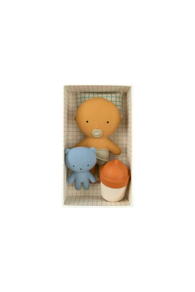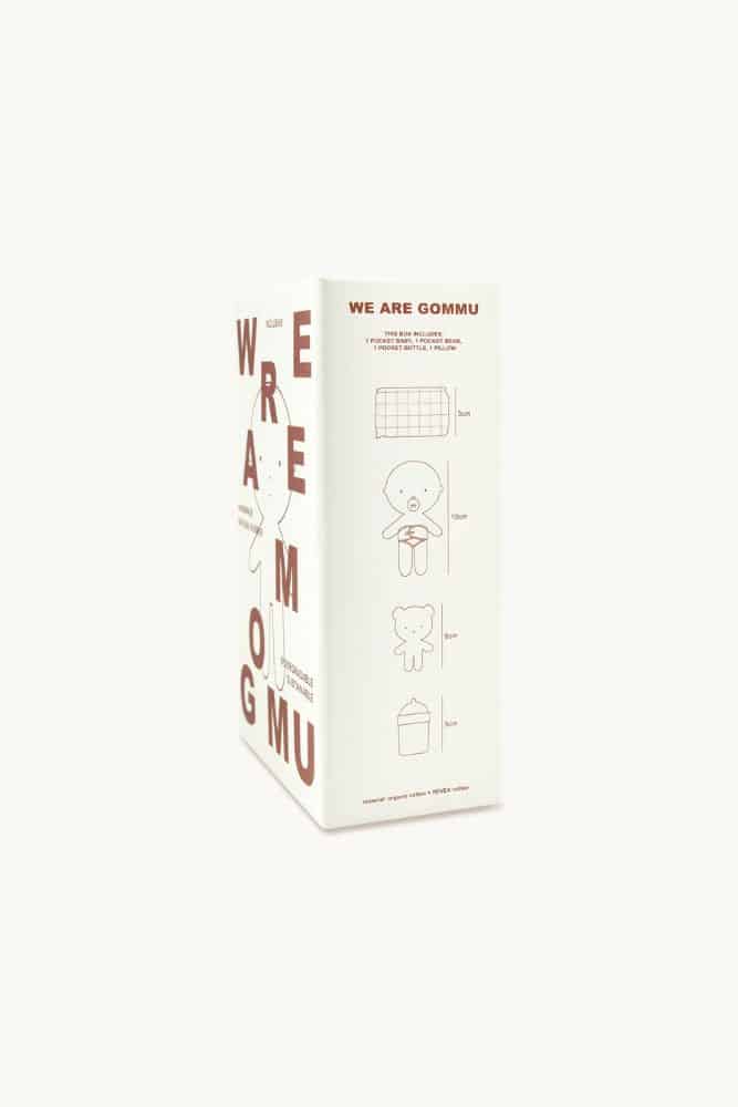 Le Gommu Pocket livré dans une boîte d’allumettes avec un oreiller, un biberon et son petit doudou ourson. L’ensemble des éléments sont fabriqués en Hévéa. Votre enfant aura une imagination débordante avec le gommu pocket.