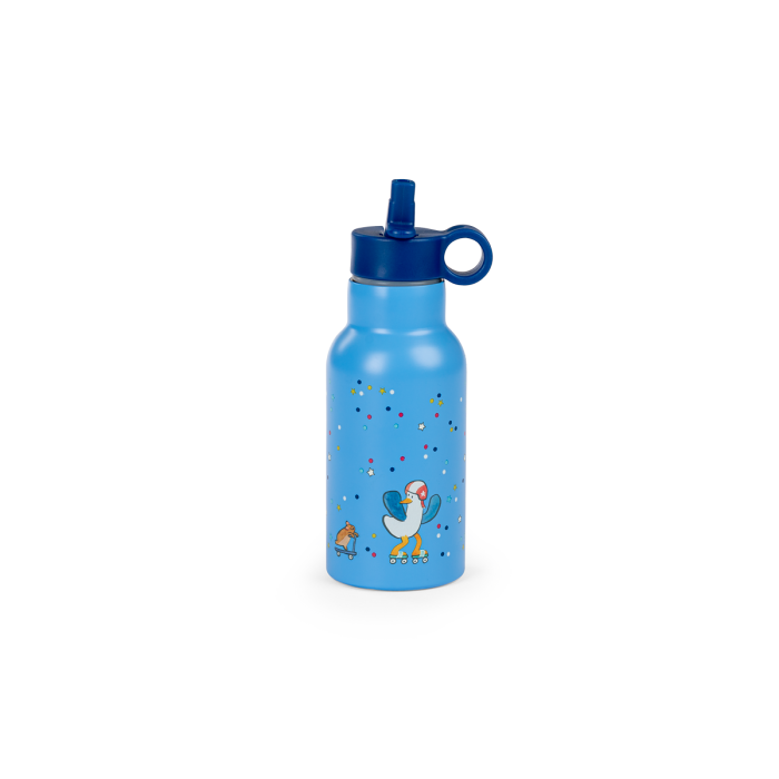 Gourde Puce et Pilou joliment illustrée. Compacte et munie d’un mousqueton, elle se glissera facilement dans un sac à dos pour l’emmener partout !