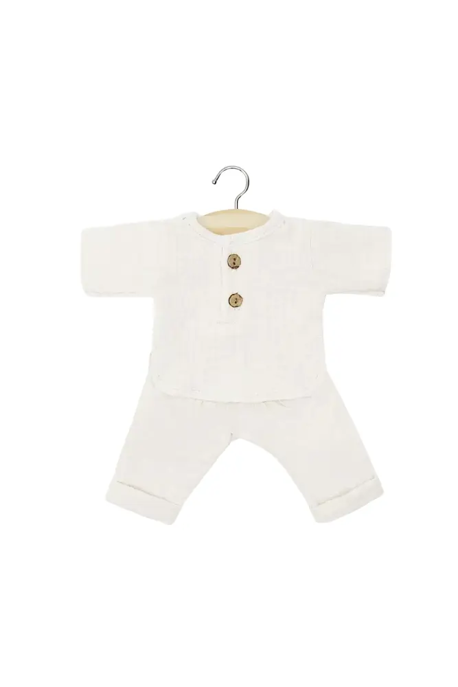 Laissez-vous séduire par l’élégance et la douceur de l’ensemble Andréa en gaze de coton écru de Minikane. Composé d’un haut délicat et d’un pantalon assorti, cet ensemble au style intemporel est parfait pour habiller les poupées Gordis. Fabriqué en gaze de coton, il offre un toucher doux et agréable, tout en apportant une touche bohème et chic à votre poupée.