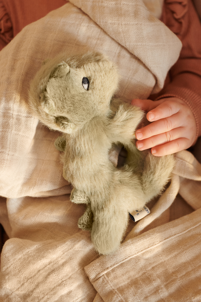Parce que la douceur ne rime pas forcément avec dodo, voici un hochet parfait pour accompagner bébé dans ses moments de jeu. Parfaitement adapté pour les petites mains, il est aussi agrémenté d’une petite clochette à l’intérieur. Bébé profite alors d’une expérience sensorielle, amusante et captivante.