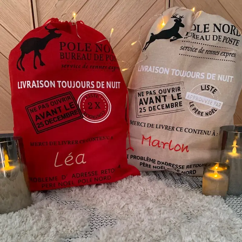 Offrez à votre sapin une touche féérique et personnelle grâce à la hotte du Père Noël personnalisable ! Conçue pour accueillir les cadeaux des enfants avec élégance et originalité, cette hotte deviendra un incontournable des fêtes de fin d’année. Glissez-la simplement sous le sapin : le Père Noël n’aura plus qu’à y déposer les jouets pour émerveiller petits et grands.
