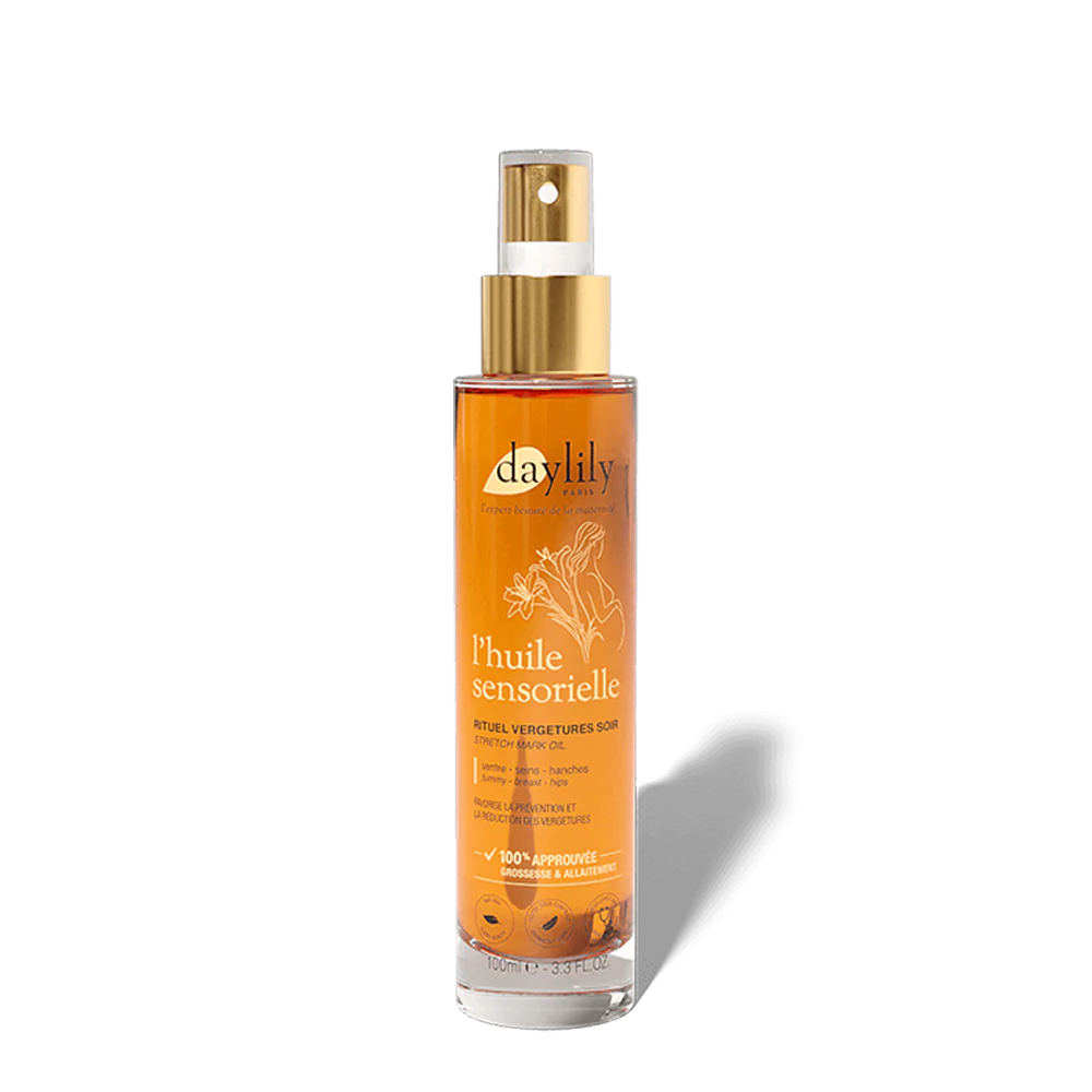 Anti vergetures – soir – 100 ml Lutter contre les vergetures n’aura jamais été aussi agréable grâce à sa texture sèche et son parfum envoûtant ! Chaque soir : vaporisez 2/3 pschitt sur le ventre puis 1 pschitt par zone. Place au massage avec des mouvements circulaires de bas en haut sur les zones sujettes aux vergetures (ventre, hanches, fesses, cuisse, poitrine, bas du dos) jusqu’à complète pénétration du soin. Pour maximiser son efficacité : utilisez-la en duo avec Le Lait Fondant à appliquer le matin pour un rituel complet. Si vous souhaitez n’utiliser que L’Huile Sensorielle, nous vous recommandons…