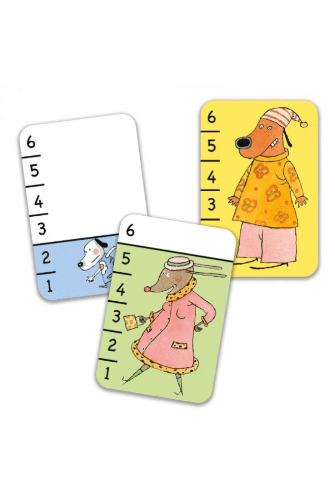Le jeu de cartes Bata-waf de Djeco ! La variante de la bataille, le plus célèbre des jeux de cartes. Les chiens remplacent les traditionnelles cartes de figures telles que le roi, le valet et la dame. Poser votre carte, vos adversaires en feront autant et le plus grand chien gagne. Mais attention, si deux chiens sont de la même taille il y aura … Bata-waf ! Le jeu qui va beaucoup faire rire les petits-bouts. Ce jeu comporte 36 cartes et jouable de 2 à 4 joueurs, Bata-waf sera pratique à emporter partout pour s’amuser instantanément n’importe-où. Les règles…