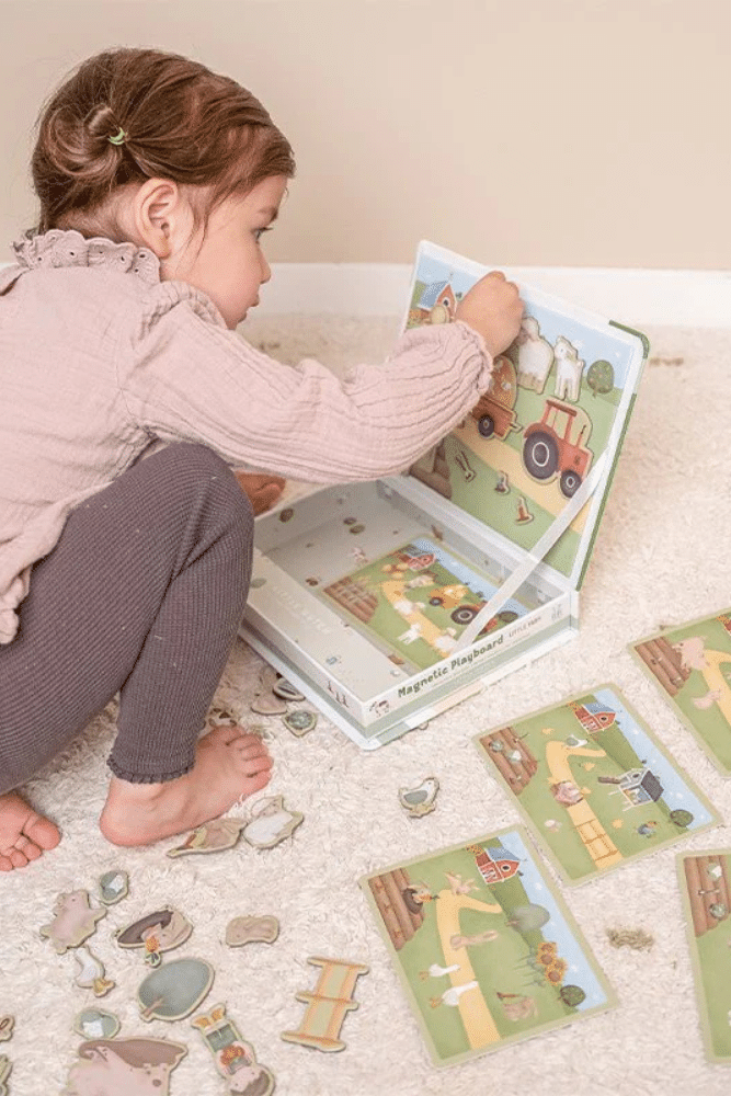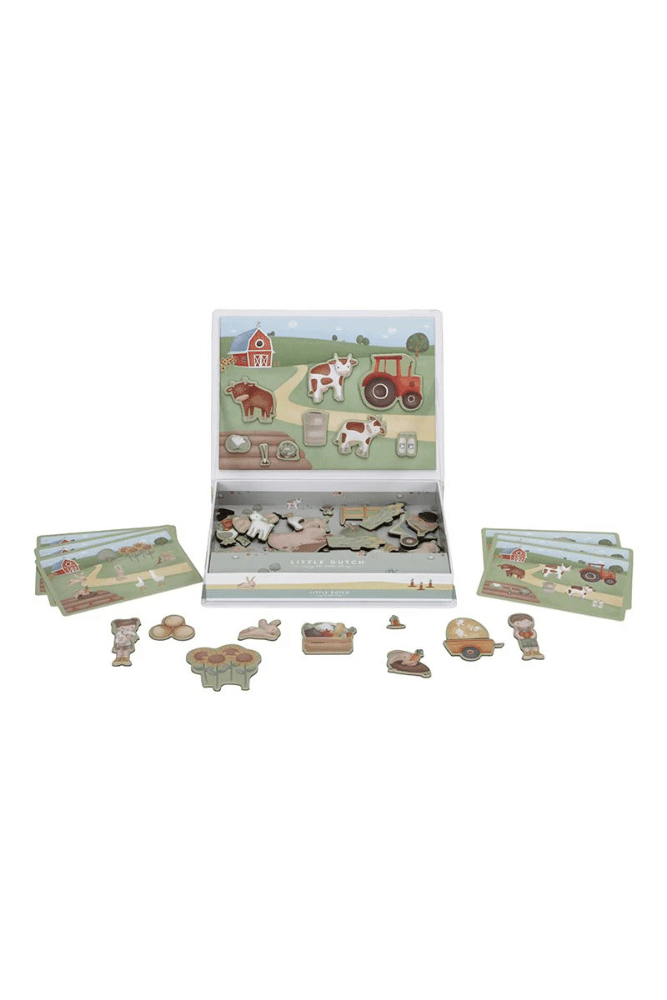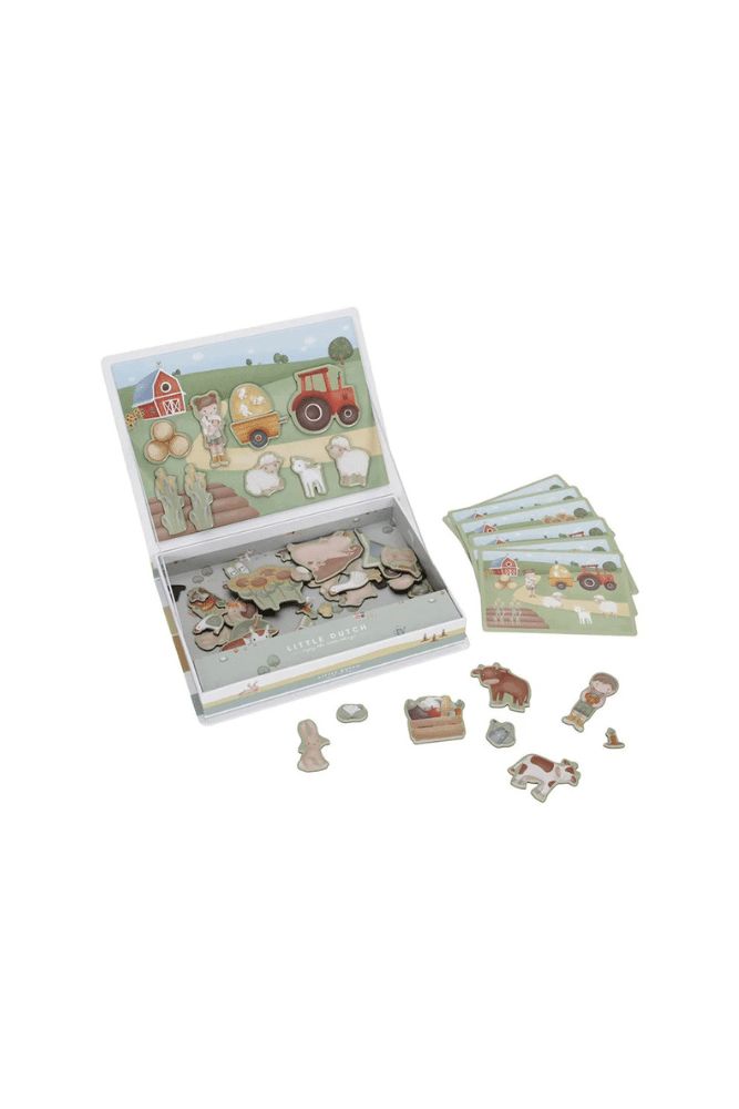Découvrez le jeu magnétique sur le thème de la ferme de Little Dutch. Votre enfant laisse libre cours à son imagination et il pourra créer des tableaux de ferme. Cela est facile grâce au champ magnétique. Ce jeu créatif est parfait pour stimuler l’imagination de votre enfant. Son format étant très pratique, il pourra l’emporter partout avec lui !