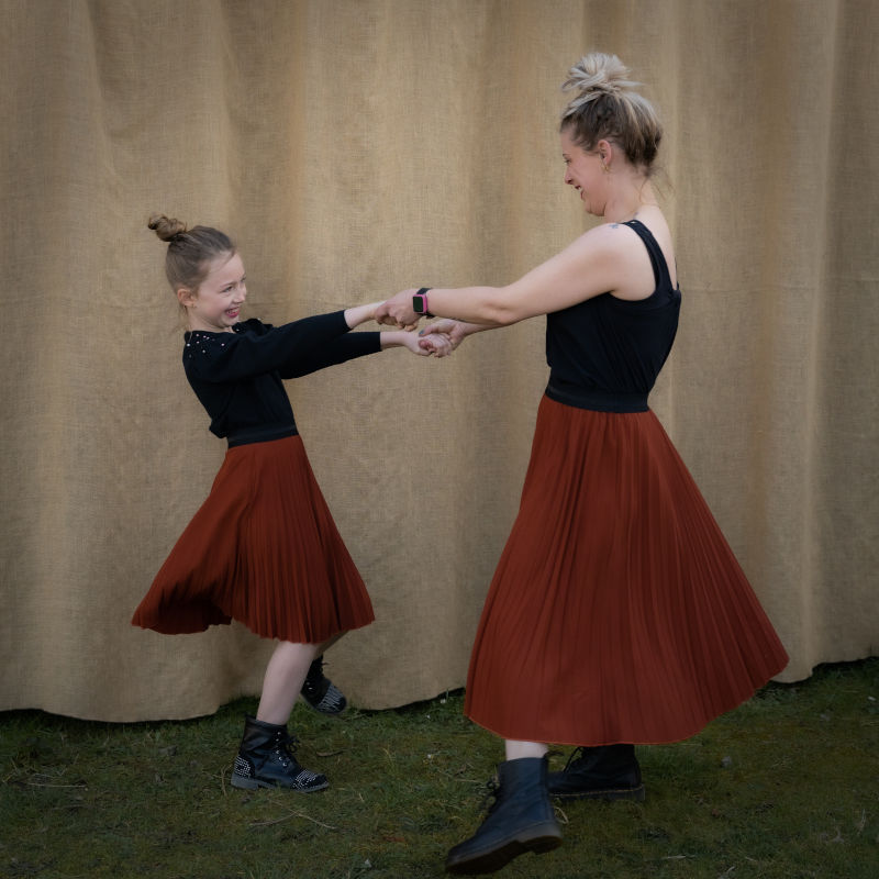 La même tenue mère et fille 😉 Jupe plissée avec bandeau élastique noir à la taille. A partir du 2 ans. Composition : 100% Polyester