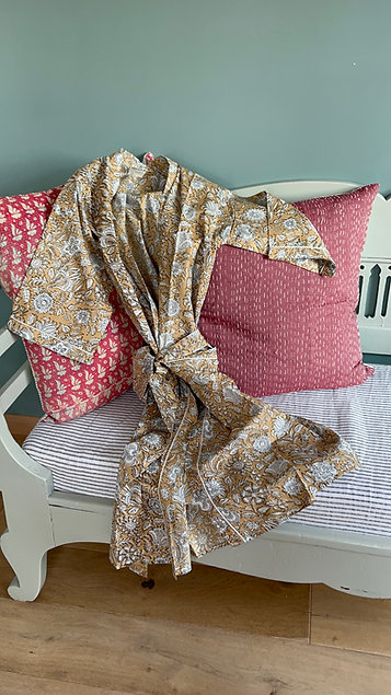 Ce kimono en coton imprimé au bloc print est idéal pour une tenue d’intérieur. Sa matière en coton respirante et douce sera confortable et légère. Elle permettra une liberté de mouvement idéal pour la détente à la maison . Son imprimé fleuri d’influence indienne vous rendra encore plus féminine et élégante chez vous. C’est un joli cadeau de naissance à faire pour une mama.