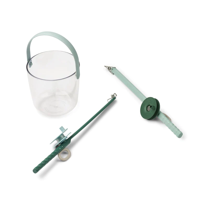 Canne : Hauteur (cm) 7, Largeur (cm) 8,5, Longueur (cm) 44. Seau : Hauteur (cm) 16, Diamètre (cm) 16. Ficelle : Longueur (cm) 500