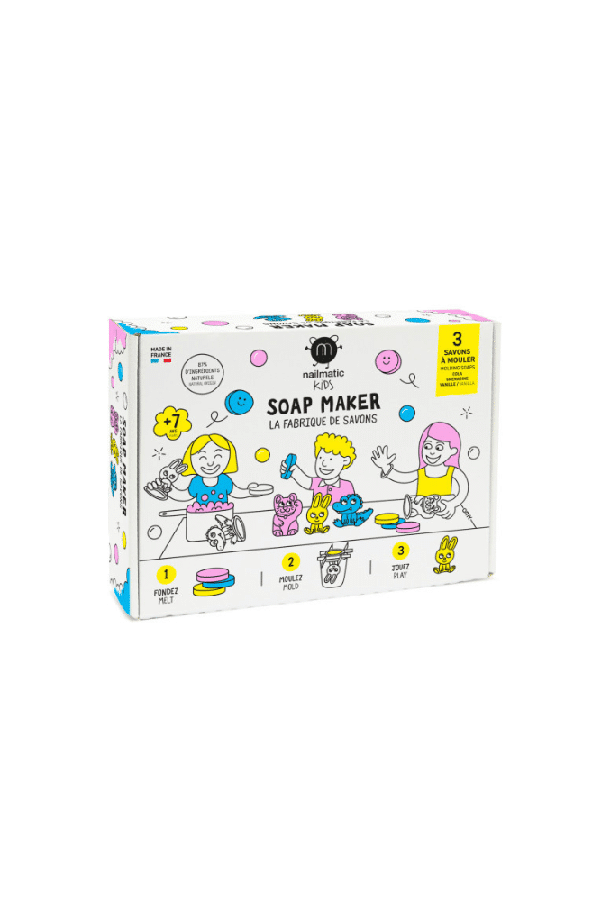 Ce kit DIY permet de fabriquer 3 savons en formes de chat, lapin et crocodile. Il contient tout le nécessaire : – 3 galets de savon (parfums cola, grenadine et vanille) – croisillons carton à découper – 3 moules en latex naturel .
