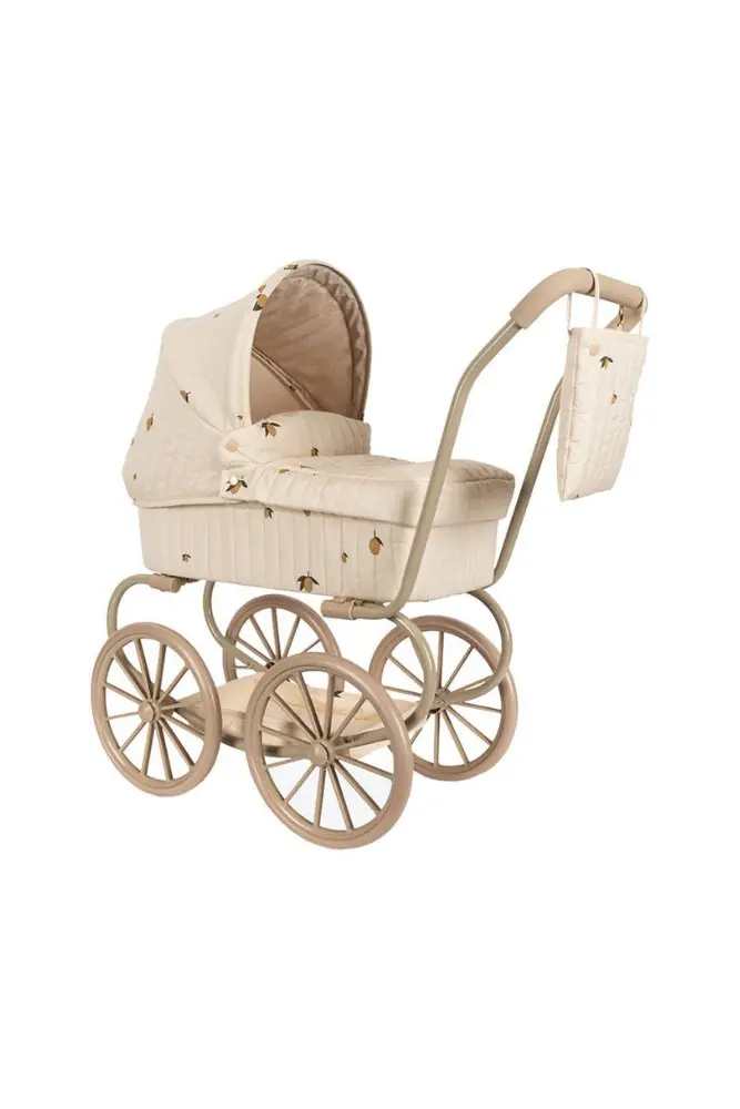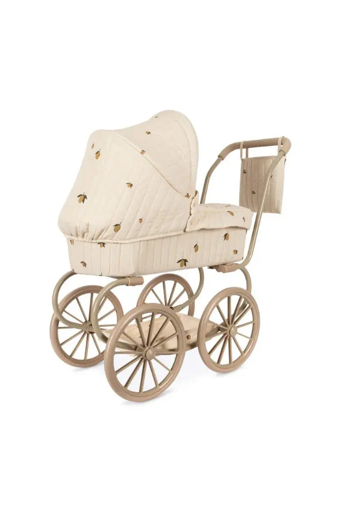 Découvrez ce landau pour poupée de la marque Konges Slojd au style vintage dans une version plus petite. Doté de 4 grandes roues pour une bonne stabilité durant les promenades de votre enfant avec sa poupée. Il est facile à plier pour pouvoir le ranger une fois la promenade terminée.