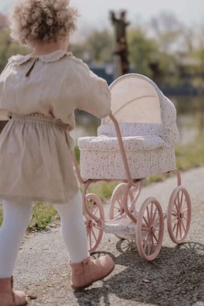 Découvrez ce joli landau robuste pour faire de belles promenades. Grâce aux quatre grandes roues, cette poussette roule en douceur et de manière stable, parfait pour l’intérieur et l’extérieur. En dessous vous trouverez un panier de rangement pratique, pour que les accessoires de poupée soient toujours à portée de main. Son cadre rose et les poignées douces complètent parfaitement ce élégant landau.
