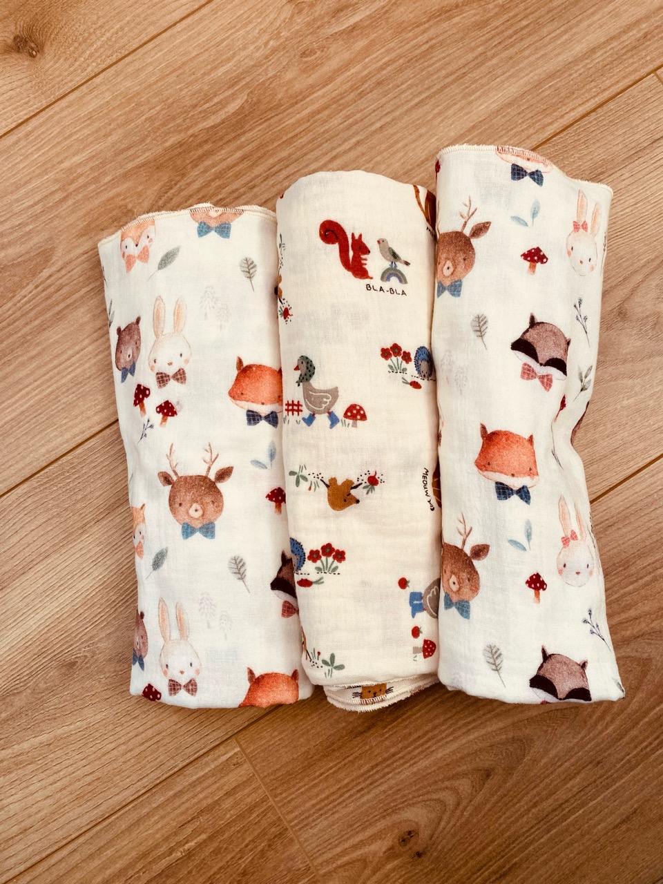 Je recommande un lavage en machine à 30° en évitant l’adoucissant pour préserver la qualité du tissu et des motifs. La double gaze de coton s’adoucit encore au fil des lavages, ce qui rend le lange toujours plus agréable à utiliser.