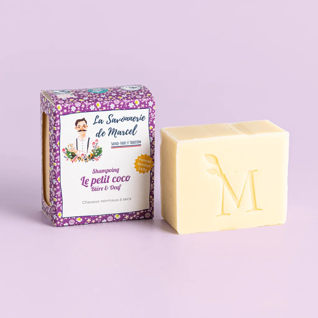 La saponification à froid est un procédé de fabrication qui respecte au mieux les huiles utilisées car non chauffées. Ainsi, toutes les propriétés et vertus des huiles végétales, beurres, huiles essentielles et autres actifs naturels sont préservées, afin d’obtenir des savons de qualité. Shampoing saponifié à froid bio – Bière & Oeufs Le petit coco est un shampoing solide ėtonnant à la bière et aux oeufs frais. La bière apporte brillance et douceur à tous les types de cheveux et les proteines des oeufs fortifient la structure du cheveu. Un mélange surprenant et authentique de belles huiles et de produits…