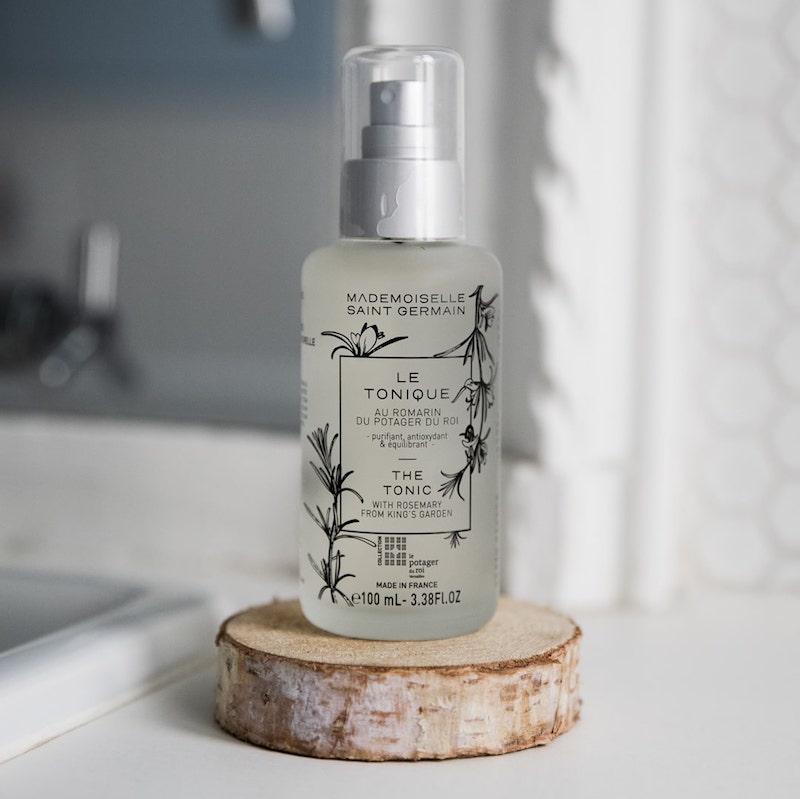 SOIN PURIFIANT, ANTIOXYDANT & ÉQUILIBRANT Lotion tonique Tous types de peaux 96% d’ingrédients français 99% d’ingrédients d’origine naturelle Le Tonique est un élixir de beauté qui agit comme un booster d’éclat au quotidien. Directement inspiré de la recette de l’Eau de la Reine de Hongrie, il purifie la peau grâce à son extrait quasiment pur de romarin, cultivé au Potager du Roi de Versailles. Également astringent, il resserre les pores et sera le parfait allié pour aider la peau à faire face aux agressions extérieures. Frais et vivifiant, Le Tonique se vaporise comme une brume légère. Flacon pompe en verre 100…