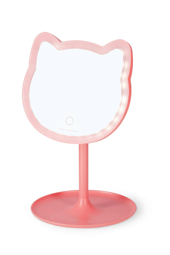 Découvrez ce joli miroir de maquillage lumineux chat de Legami. Réglez la luminosité pour voir au mieux, utilisez la base en porte-objet pour poser vos bijoux et vos petits accessoires de maquillage.