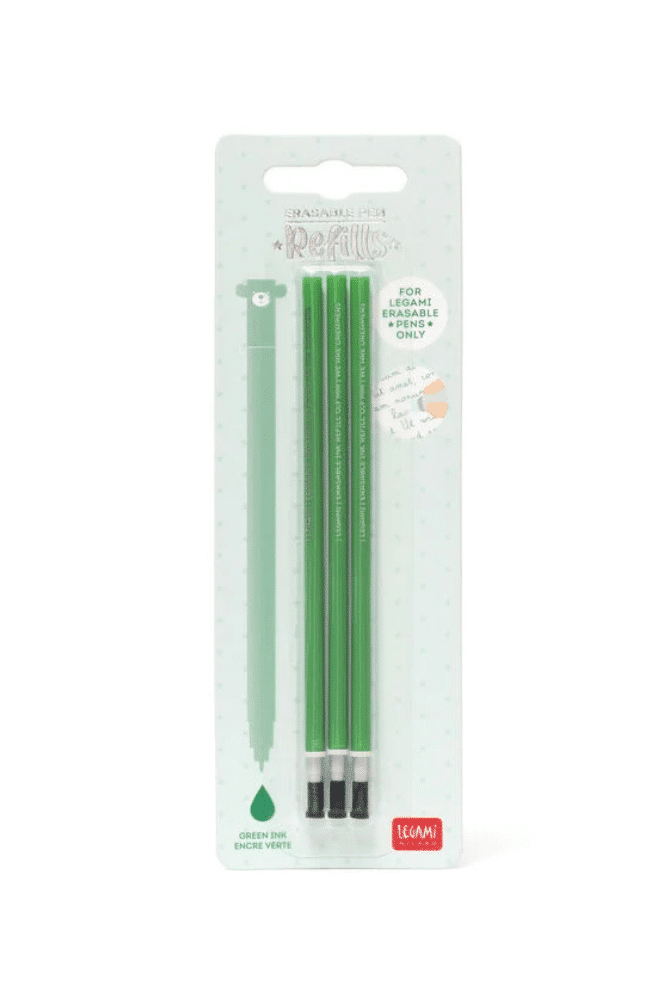 Prolongez l’utilisation de votre stylo effaçable Legami avec ces recharges vertes ! Exprimez votre créativité avec une encre verte vive, effaçable à volonté. Grâce à ce pack économique de 3 recharges, votre stylo Legami préféré est toujours prêt à écrire, corriger et recommencer !