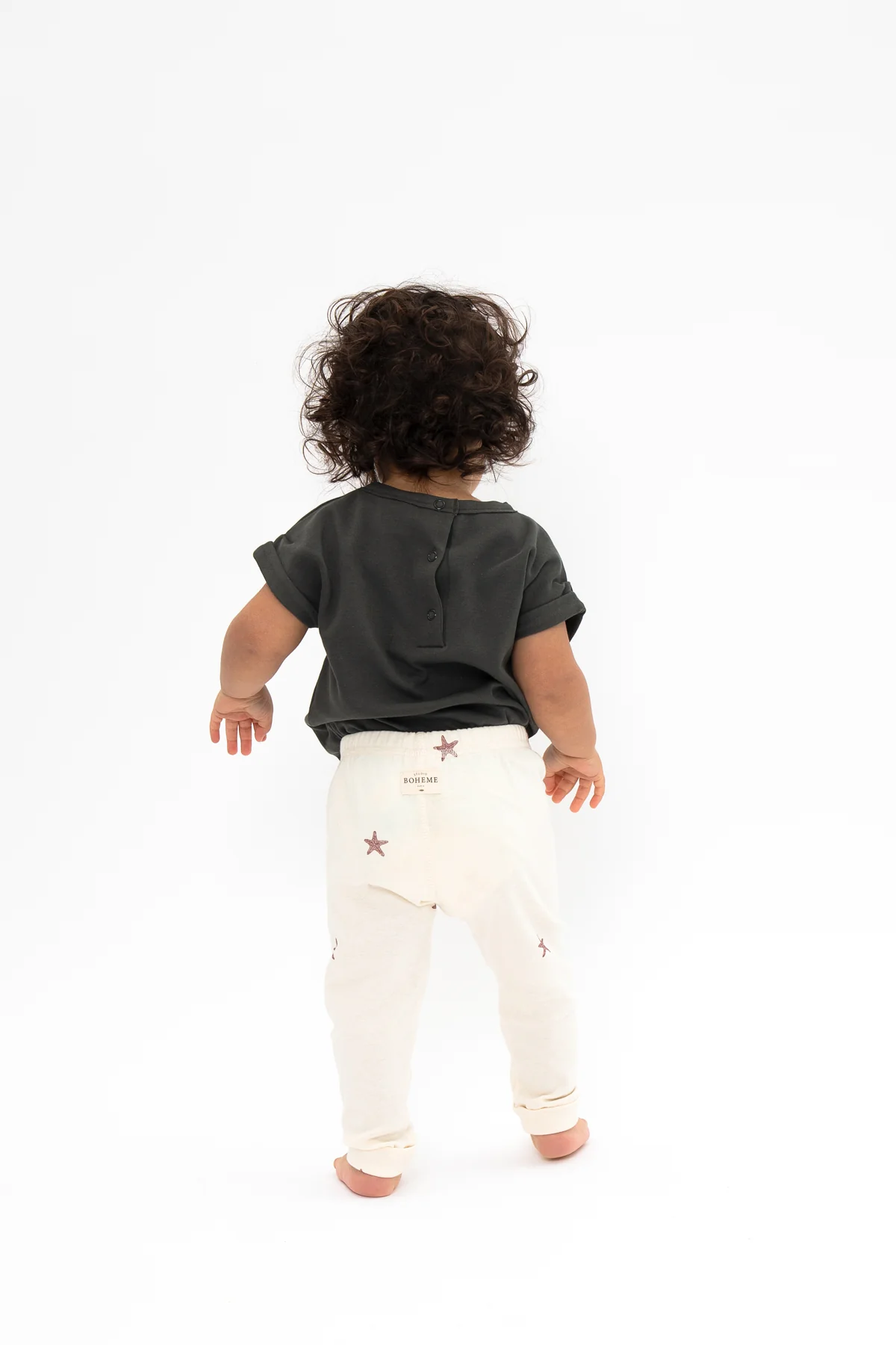 Legging mixte très confortable en jersey côtelé de coton biologique. Taille élastiquée et petits revers cousus dans le bas. Etiquette décorative Studio Bohème Paris au dos. Conseils taille: ce legging taille assez grand, nous vous conseillons de prendre la taille la plus proche de l’âge de votre enfant. Par exemple du 36M pour un enfant de 3 ans. Si vous hésitez entre deux tailles, prenez la taille du dessus.