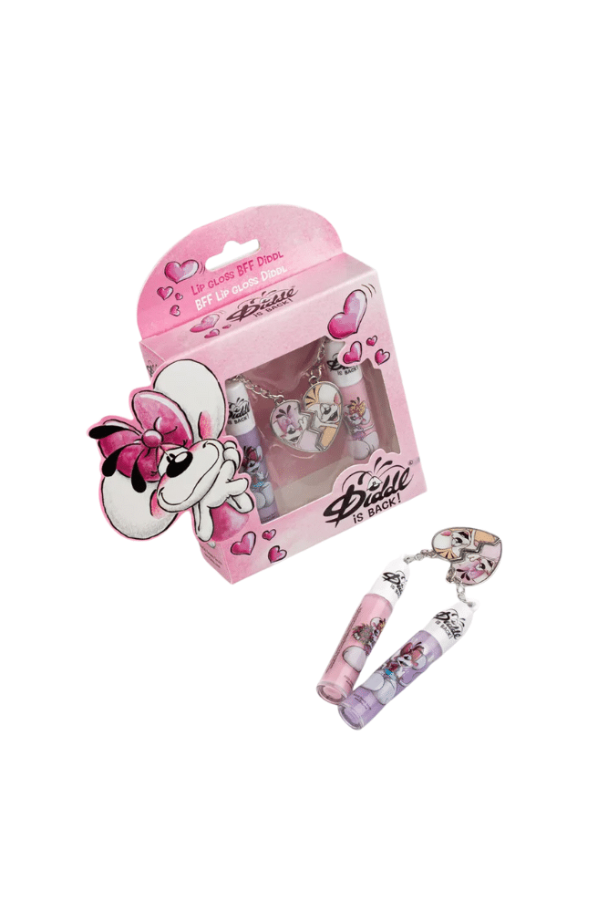 Un joli coffret pour les vraies amitiés ! Découvrez ce duo de gloss spécial BFF. Un gloss rose et un gloss violet avec un pendentif « moitié coeur » chacun. Le packaging est orné de Diddlina, la souris préférée de Diddl, dans une ambiance pastel et fun.