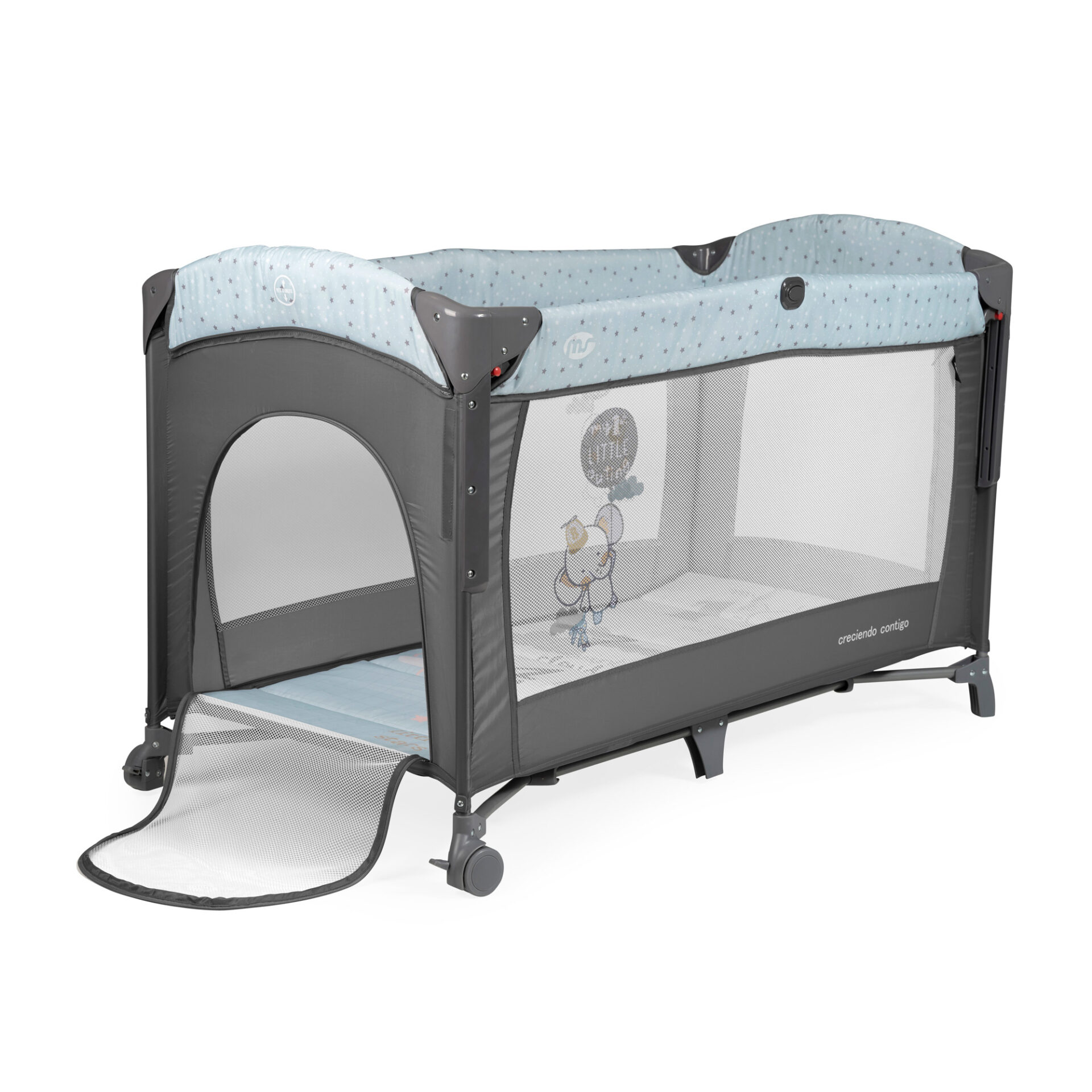 Grâce à sa polyvalence, ce lit s’adapte à différents types de lits, offrant une solution flexible pour le cododo en toute sécurité. Ses multiples niveaux de réglage en hauteur et sa fenêtre avec zip permettent à votre bébé de jouer en toute sécurité tout en restant sous surveillance. De plus, le plan à langer intégré simplifie les changements de couches, tandis que les coins sécurisés et les roulettes avec frein garantissent une manipulation aisée et sécurisée.