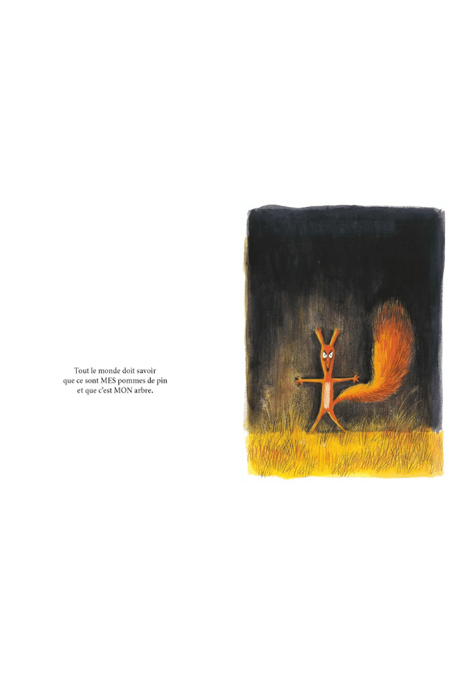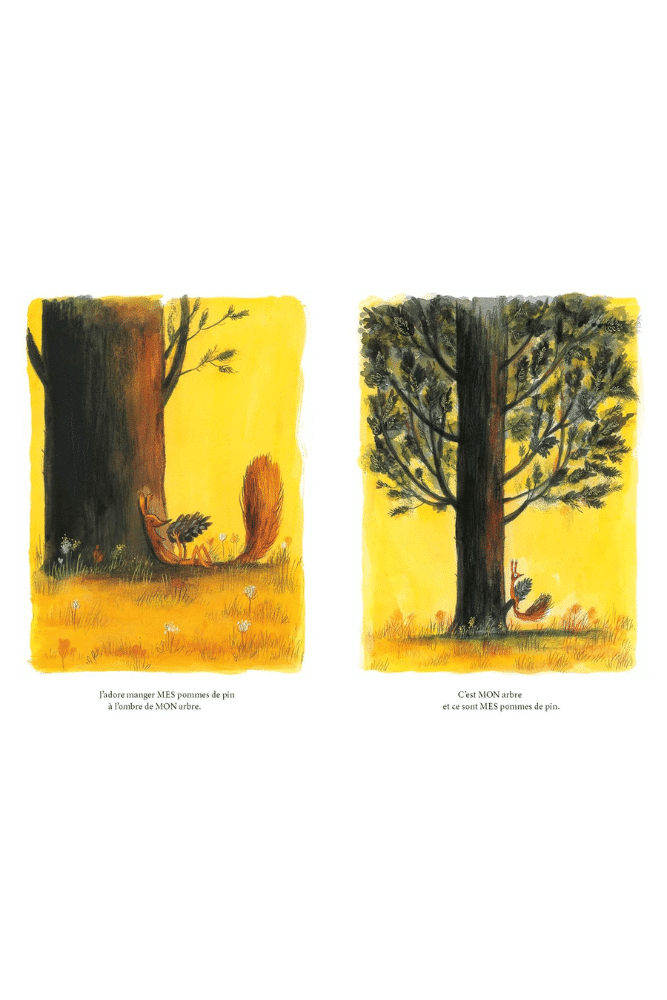 J’adore cet arbre. C’est MON arbre, dit le bel écureuil roux. J’adore manger MES pommes de pin à l’ombre de MON arbre. C’est MON arbre et ce sont MES pommes de pin. Tout le monde doit savoir que ce sont MES pommes de pin et que c’est MON arbre. Que faudrait-il faire pour le protéger des autres ?