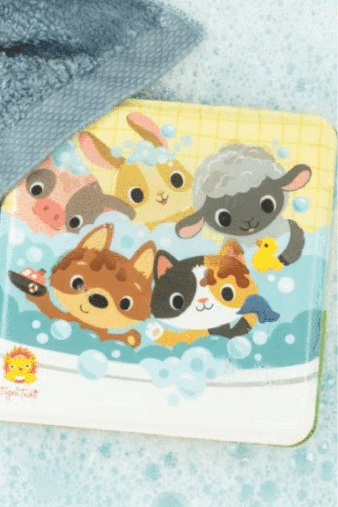 Découvrez le livre de bain jungle de Tiger tribe, un original jouet de bain pour les enfants à partir de 6 mois, un livre de bain magique qui amusera beaucoup votre enfant. Les enfants adoreront transformer ces petites bêtes sales en créatures propres et joyeuses. Les enfants peuvent baigner ces adorables animaux de la jungle encore et encore sans jamais manquer de boue ! Lorsque l’eau est chaude, regardez la saleté disparaître comme par magie de leur fourrure. Mais lorsque l’eau est froide, préparez-vous à voir les taches de boue réapparaître, juste à temps pour une nouvelle séance de bain…