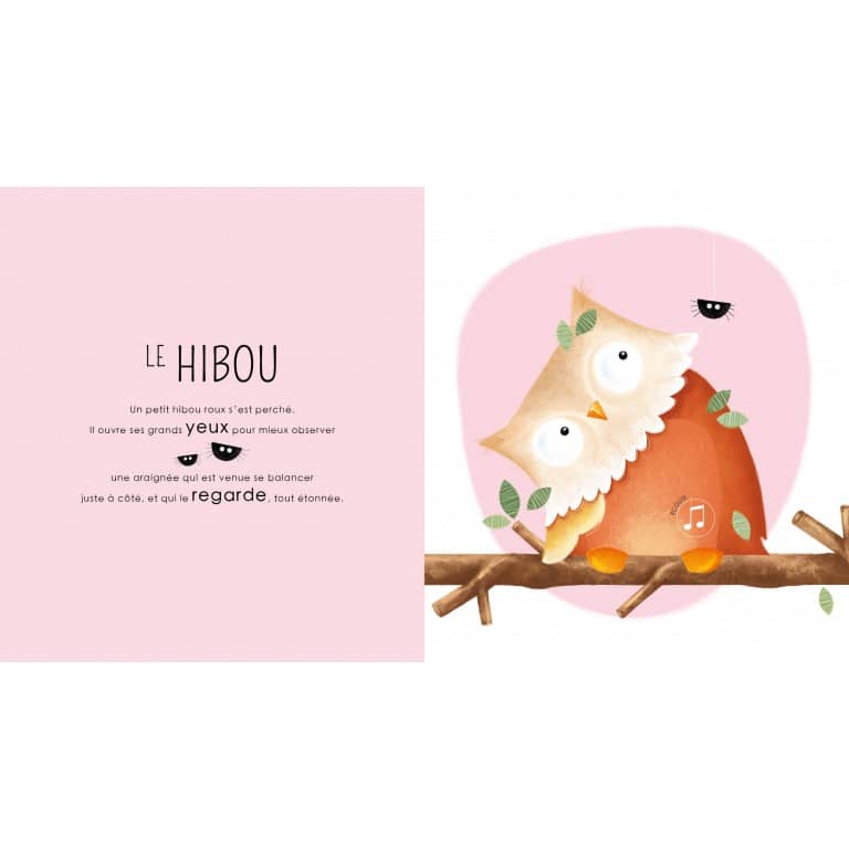 Livre d’éveil – Sassi Feuillette les pages de ce livre pour découvrir les petits habitants de la forêt et appuie sur les boutons pour écouter leurs cris. La forêt abrite de nombreux animaux : pour découvrir tous ses habitants, regarde ce joli livre et appuie sur les boutons pour connaître la petite histoire de chacun !