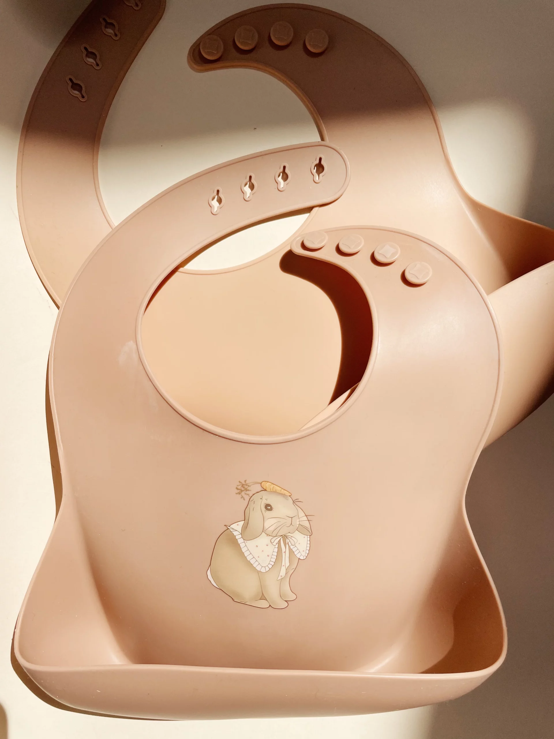 Bavoir équipé d’une « poche » frontale pratique permettant de retenir la nourriture qui tombe pendant le repas