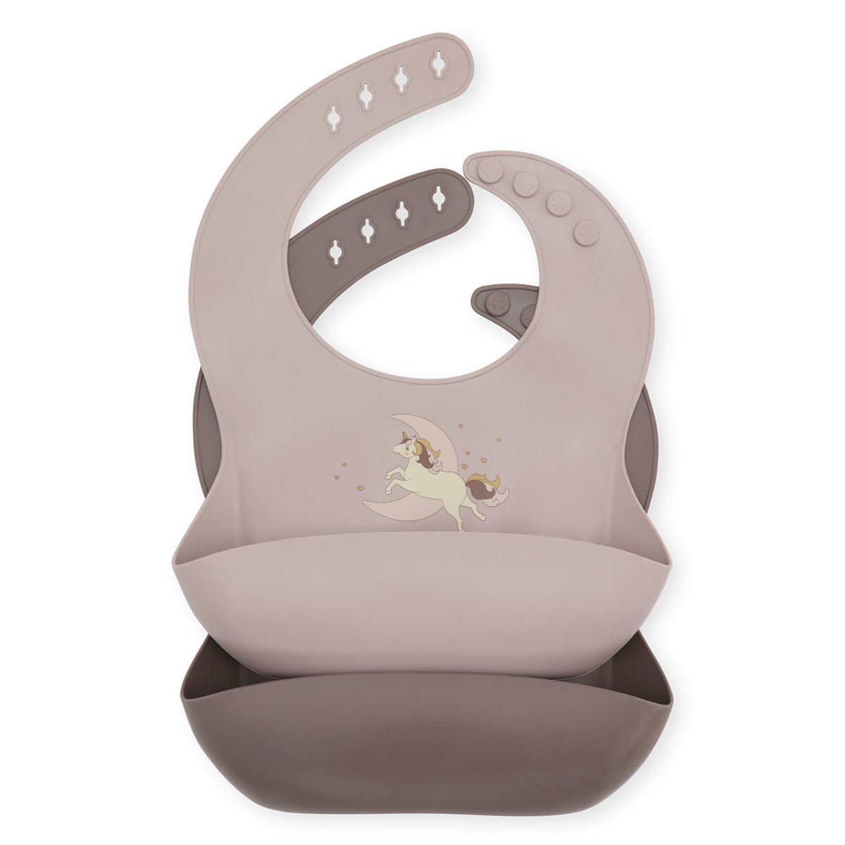 Bavoir équipé d’une « poche » frontale pratique permettant de retenir la nourriture qui tombe pendant le repas