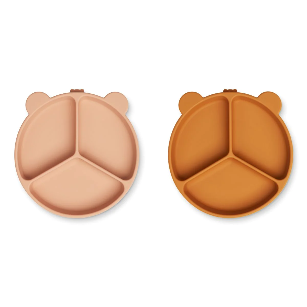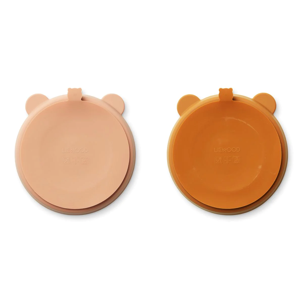Lot de 2 assiettes de la marque Liewood en forme d’animaux. Cette assiette a une fine base en silicone qui adhère à différentes surfaces, ce qui rend presque impossible pour les enfants de la soulever ou de la basculer.