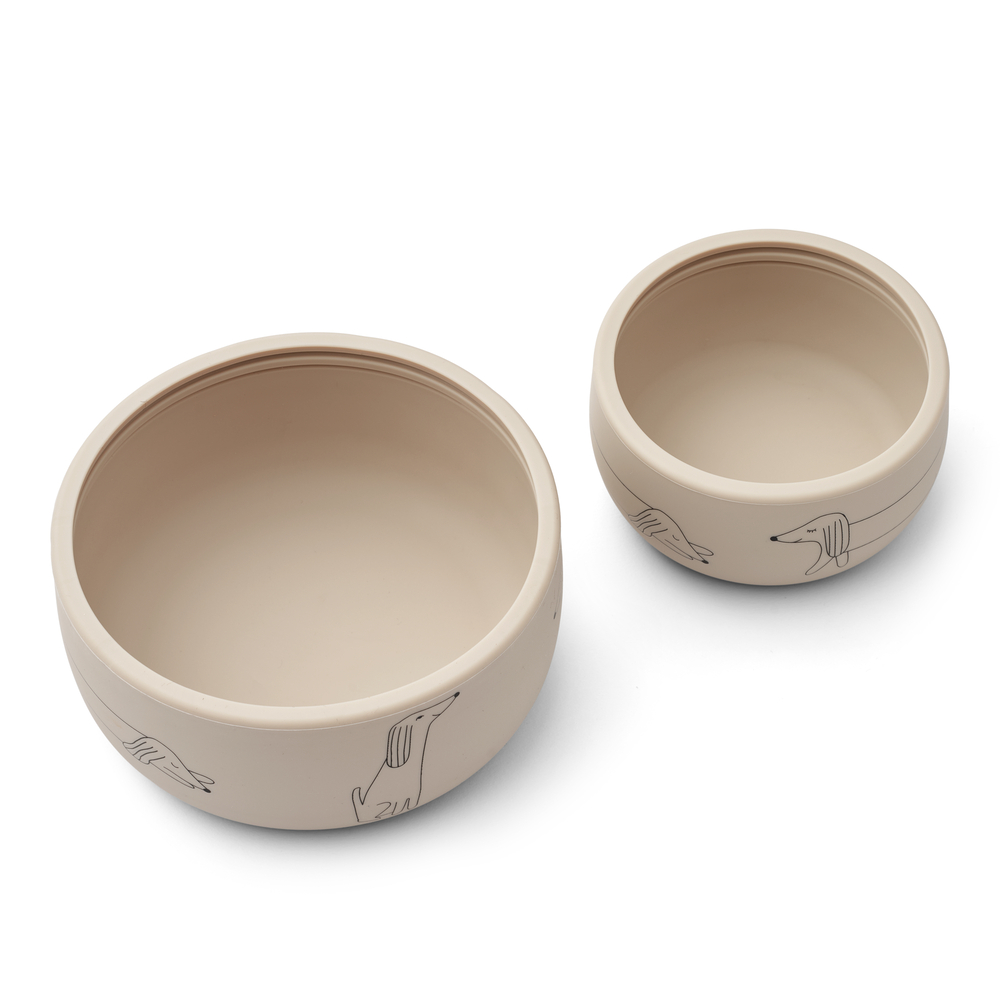 Idéal pour les en-cas et les petits repas en déplacement, l’ensemble de boîte repas souple Liewood comprend deuxr écipients en silicone qui peuvent être facilement rangés les uns dans les autres.