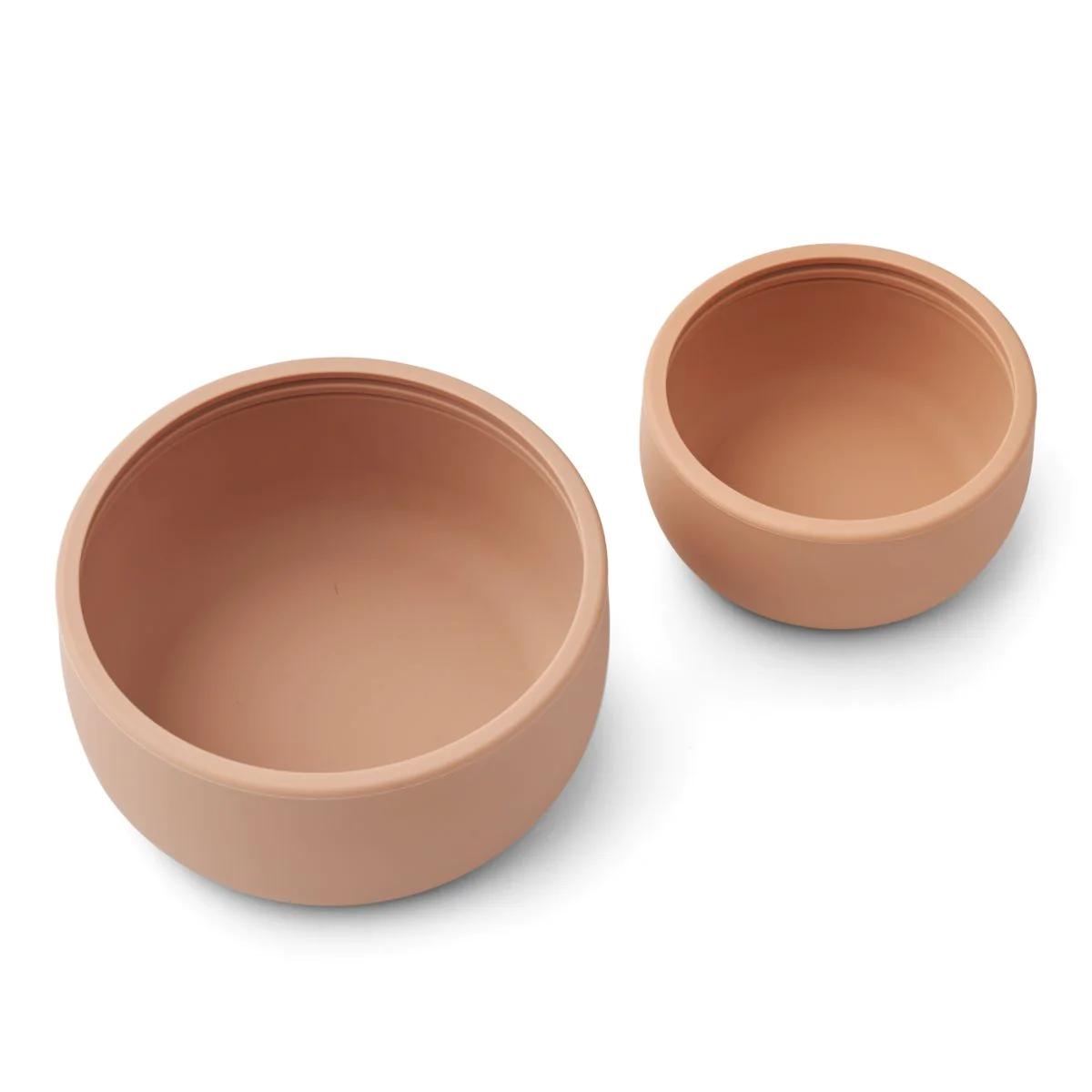 Idéal pour les en-cas et les petits repas en déplacement, l’ensemble de boîte repas souple Liewood comprend deuxr écipients en silicone qui peuvent être facilement rangés les uns dans les autres.