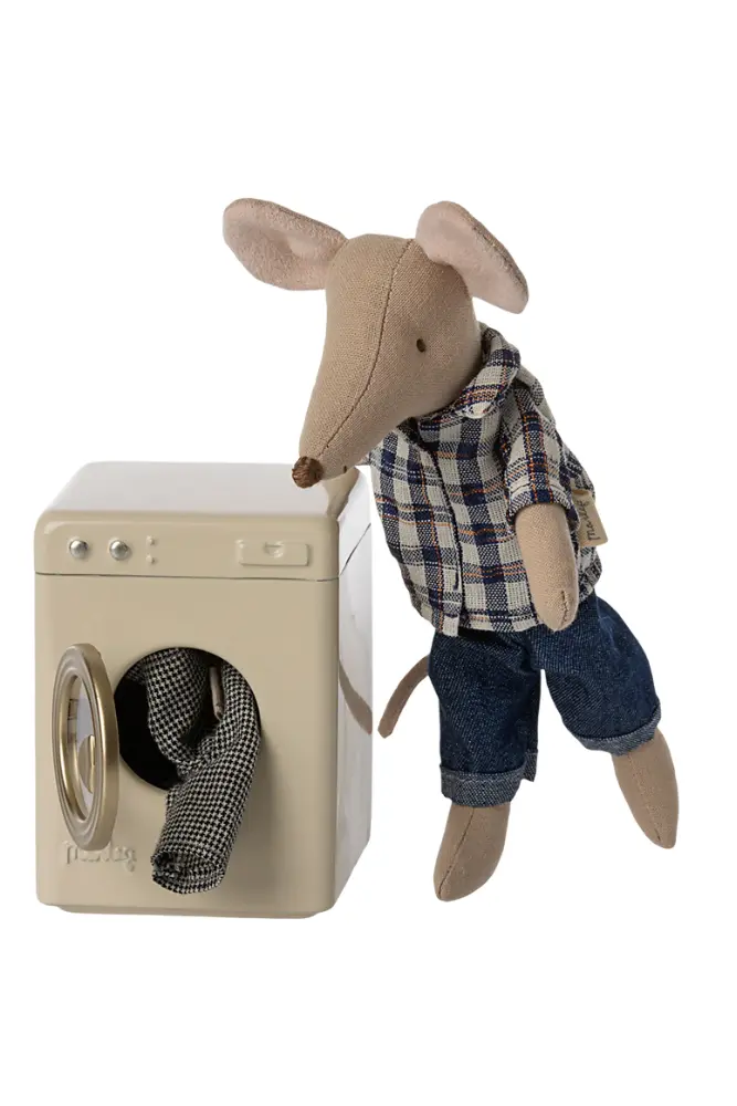Une machine à laver parfaite pour compléter sa maison de poupées. Fabriqué en métal et peinte en blanc cassé, elle possède de nombreux détails.