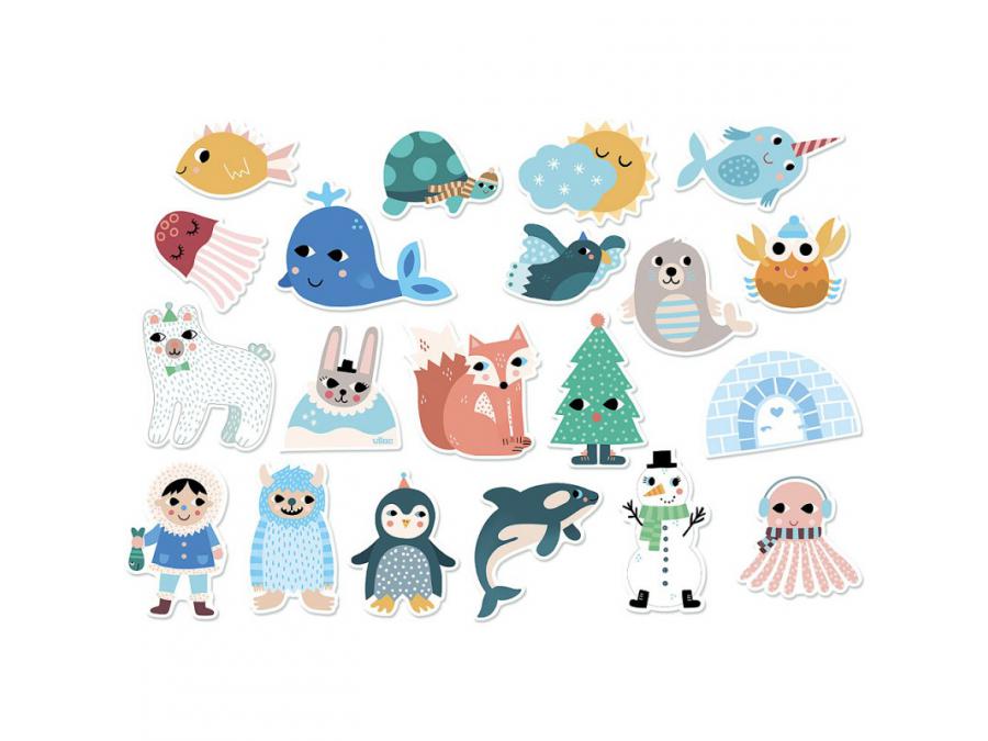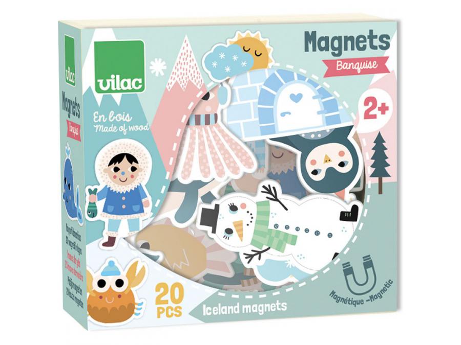 Coffret de 20 magnets en bois – illustrés par Michelle Carlslund – sur le thème se l’islande À partir de 2 ans.